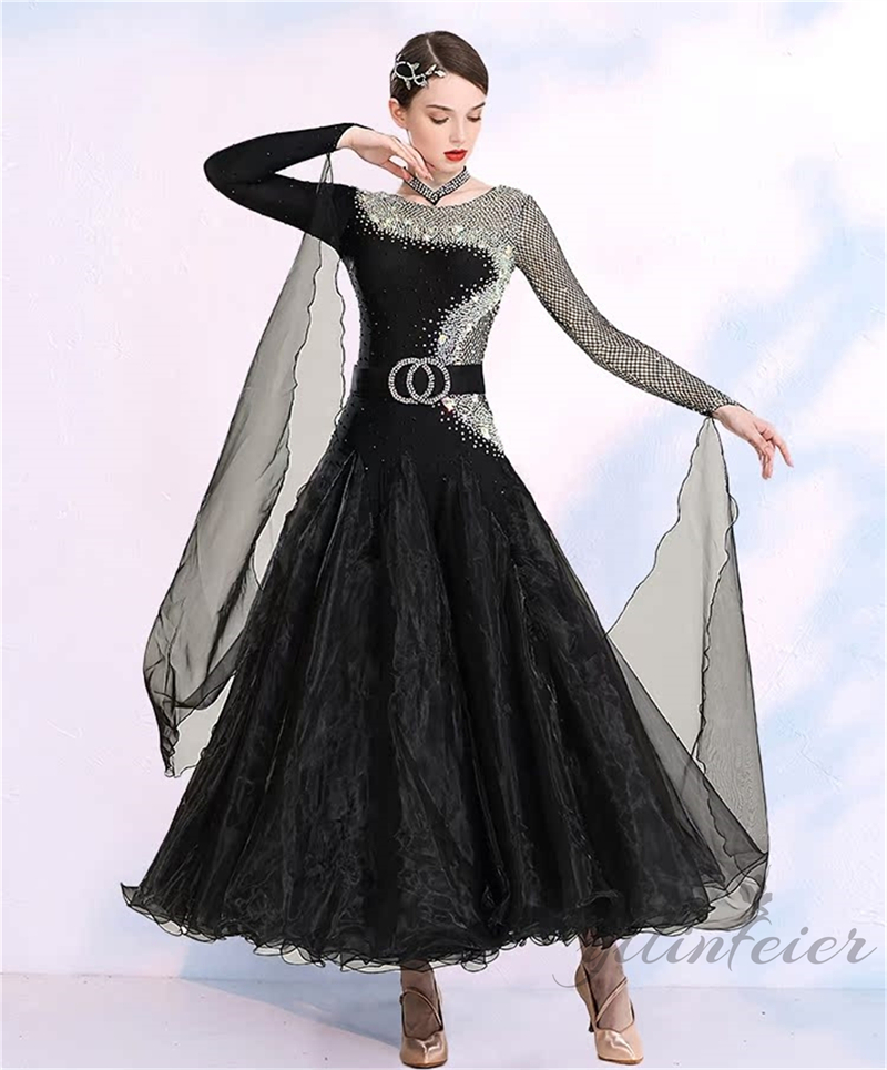 社交ダンス レディース ダンスドレス 衣装 モダンダンス衣装 ワンピース モダンダンス衣装 社交ダンス衣装 広がる裾スタンダード レッスン着 競技着 演出用 高級感 踊りドレス 大人気