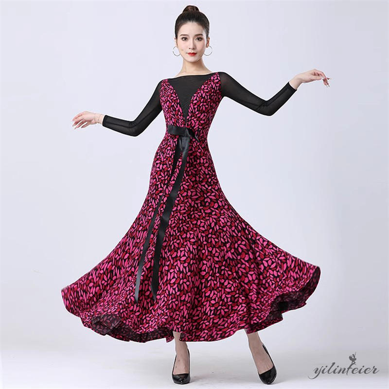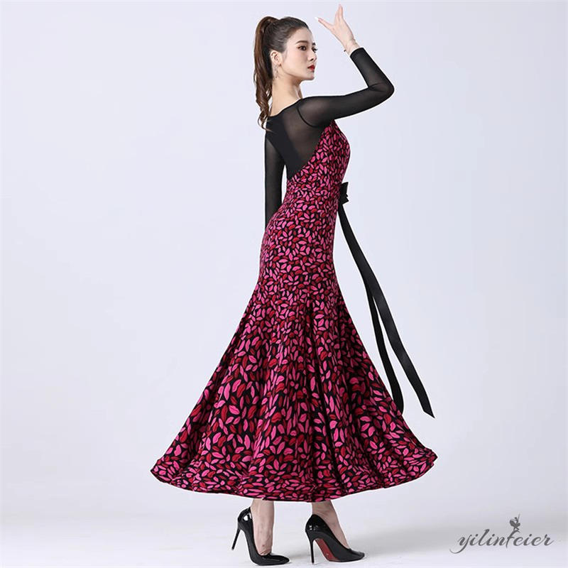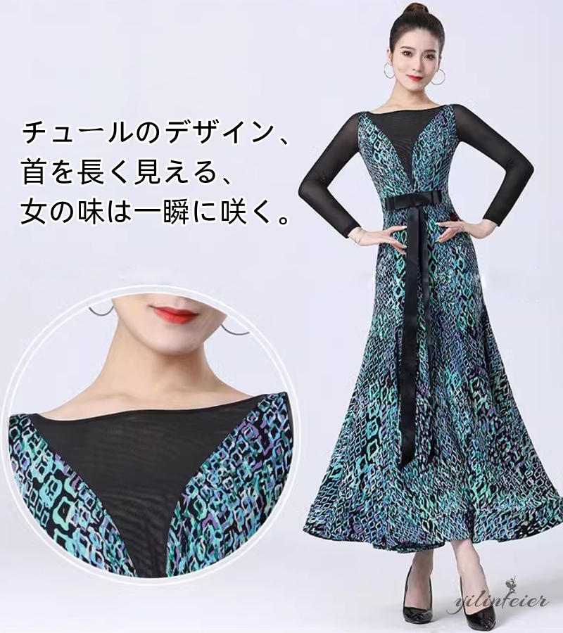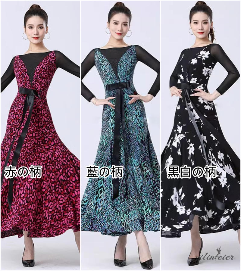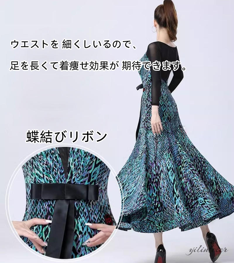 社交ダンス レディース ダンスドレス 衣装 ワルツ ワンピース 蝶結びリボン モダンダンス衣装 社交ダンス衣装 広がる裾スタンダード レッスン着 競技着 演出用 高級感 踊りドレス 大人気