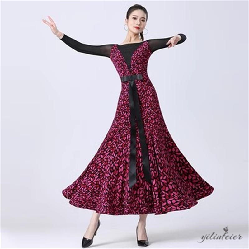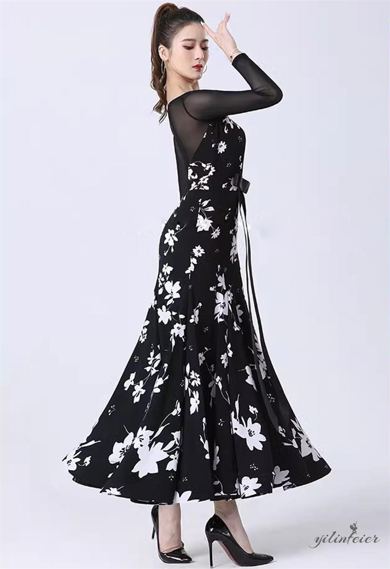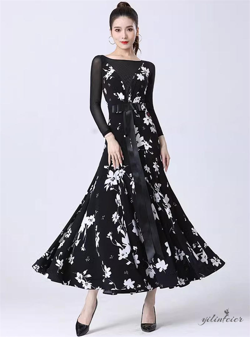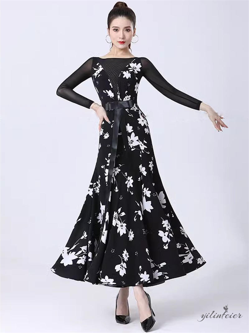 社交ダンス レディース ダンスドレス 衣装 ワルツ ワンピース 蝶結びリボン モダンダンス衣装 社交ダンス衣装 広がる裾スタンダード レッスン着 競技着 演出用 高級感 踊りドレス 大人気