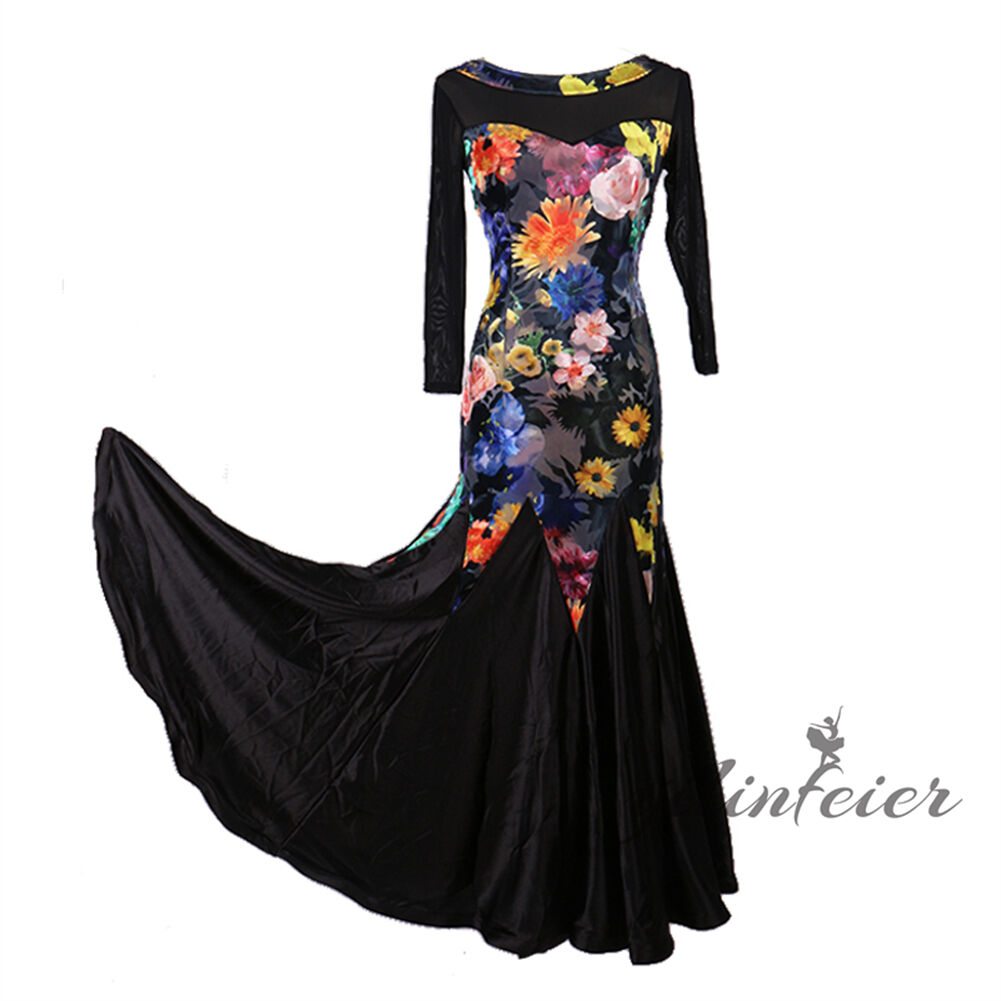 社交ダンス レディース ダンスドレス 衣装 ワルツ ワンピース イベント 大きい裾 モダン ドレス 社交ダンス衣装 広がる裾 スタンダード レッスン着 演出用 高級感 踊りドレス 大人気