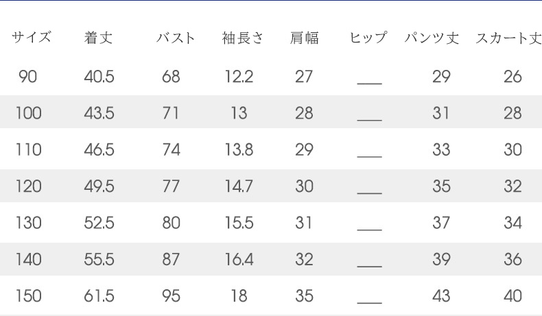 サイズ: 90 100 110 120 130 140 150