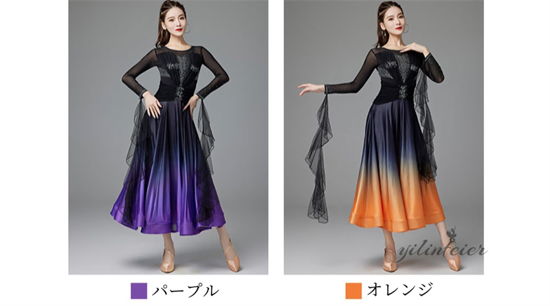 社交ダンス衣装として、またステージ衣装として、華やかさを演出できる魅力的な衣装です。