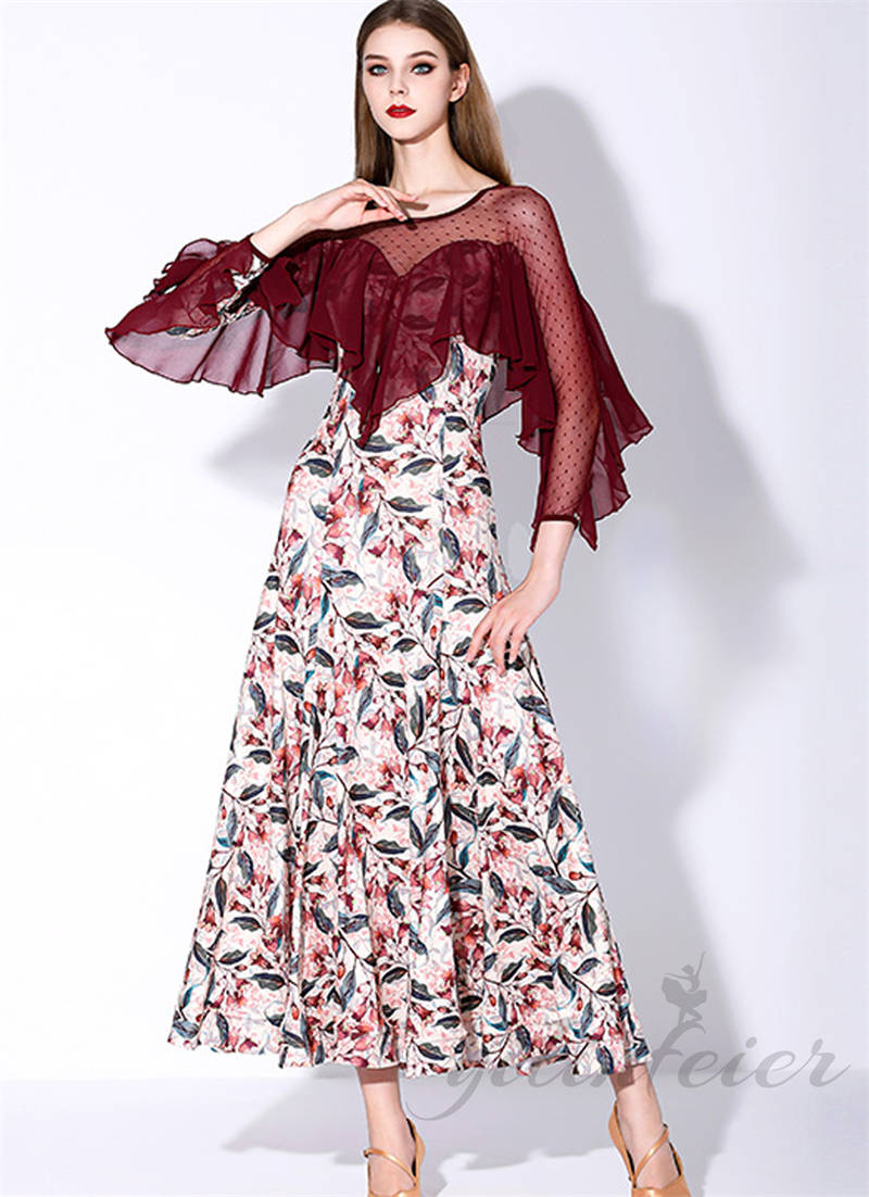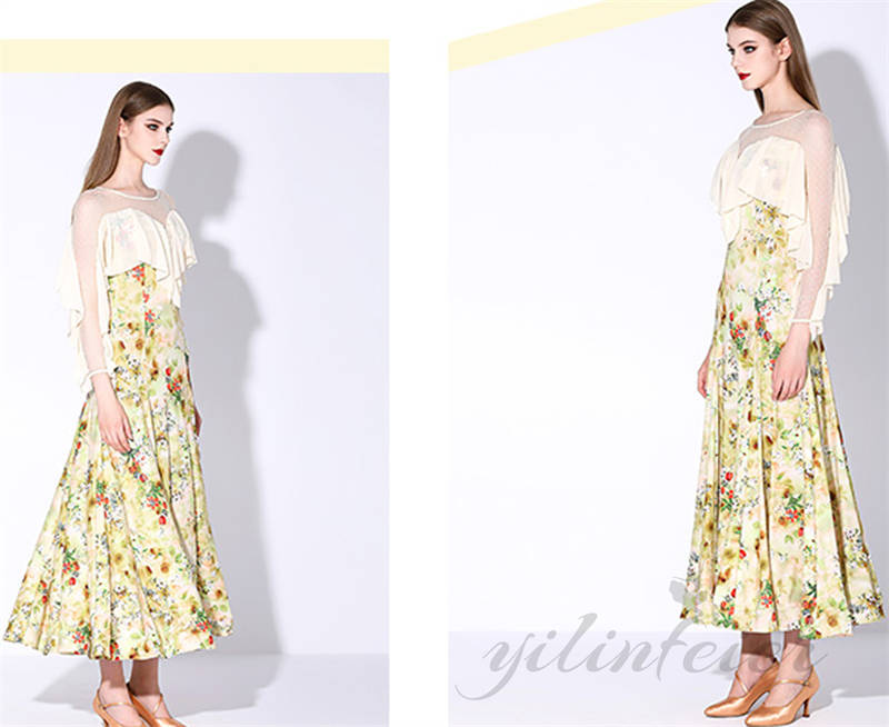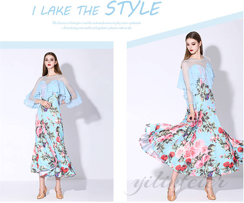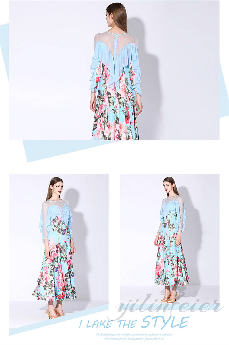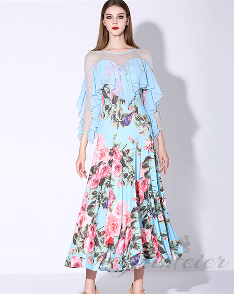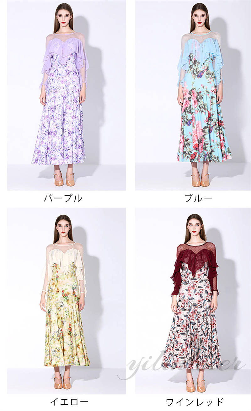 社交ダンス レディース ダンスドレス 衣装 ワルツ ワンピース イベント 大きい裾 モダン ドレス 社交ダンス衣装 広がる裾 スタンダード レッスン着 演出用 高級感 踊りドレス 大人気