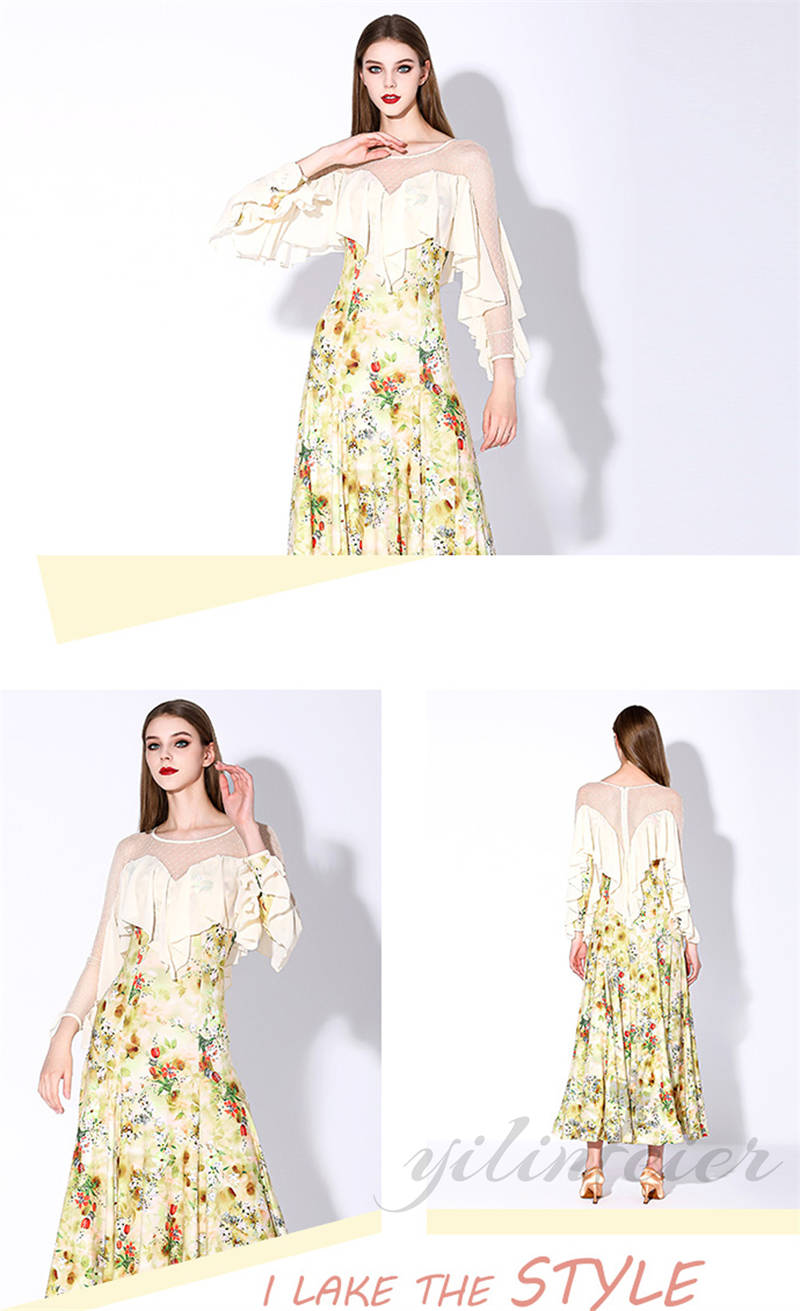 モダン 社交ダンス ドレス ワンピース ボリューム マキシ丈 ホースヘア ラウンドネック レディース 社交ダンス 競技ダンス 競技会 発表会 コンテスト コンクール エレガント