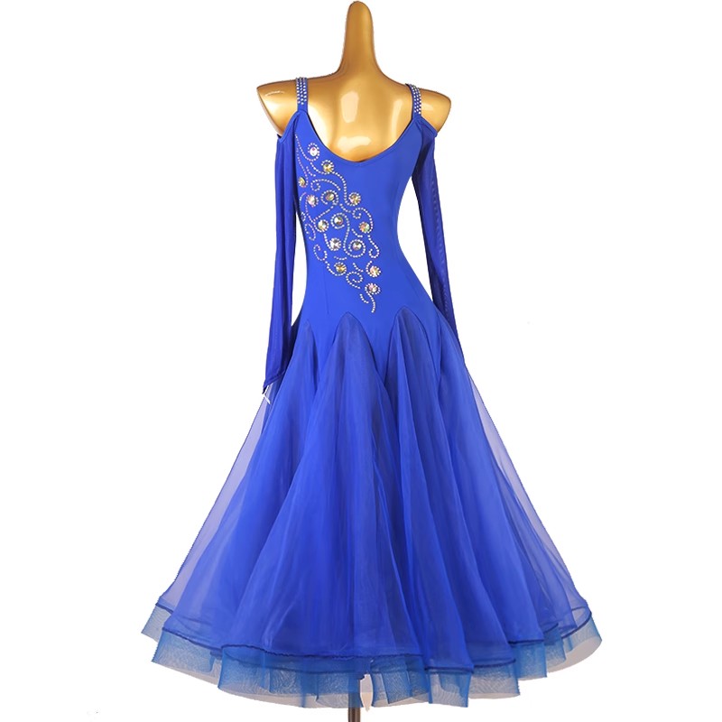 社交ダンス レディース ダンスドレス 衣装 ワルツ ワンピース イベント 大きい裾 モダン ドレス 社交ダンス衣装 広がる裾 スタンダード レッスン着 演出用 高級感 踊りドレス 大人気