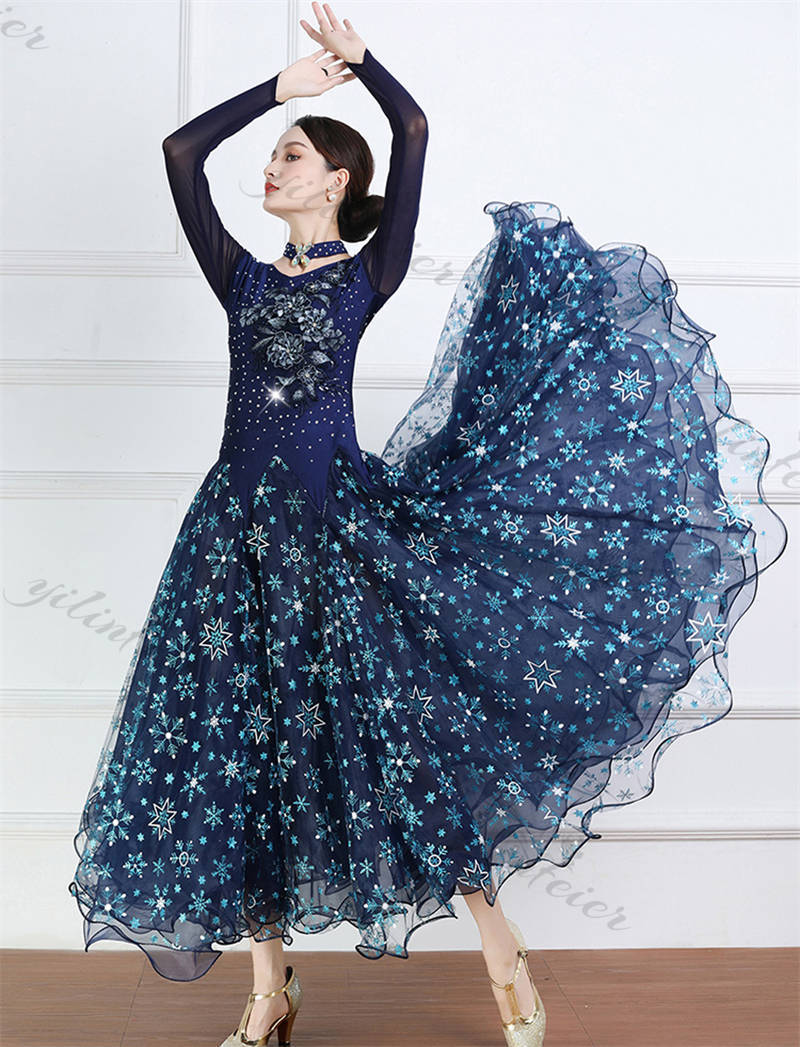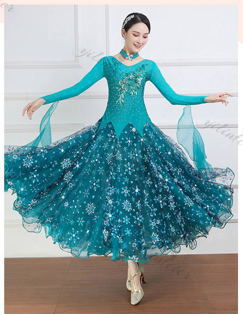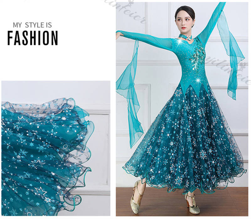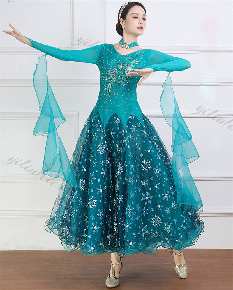 社交ダンス レディース ダンスドレス 衣装 ワルツ ワンピース イベント 大きい裾 モダン ドレス 社交ダンス衣装 広がる裾 スタンダード レッスン着 演出用 高級感 踊りドレス 大人気