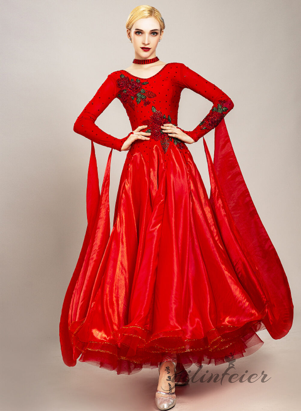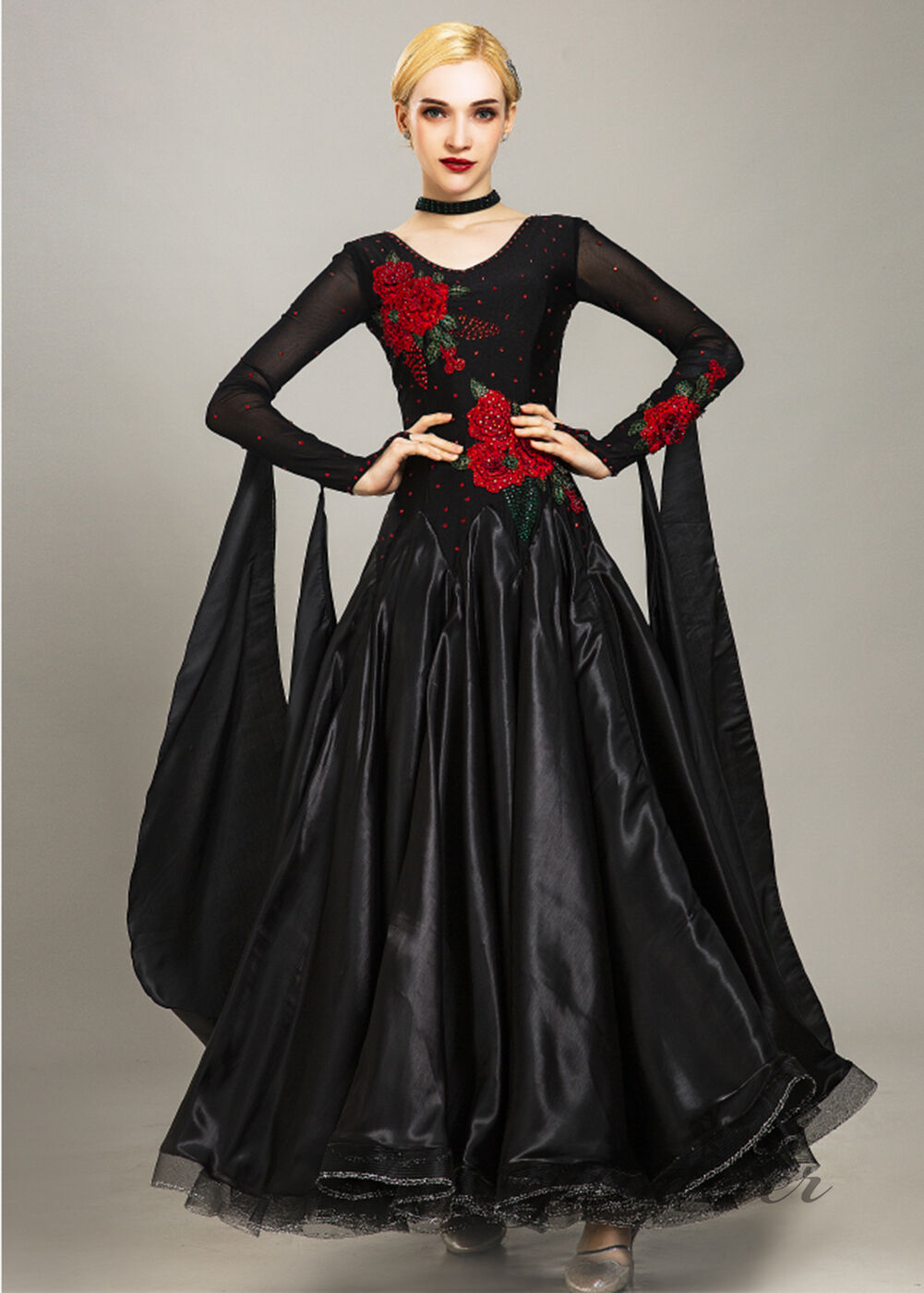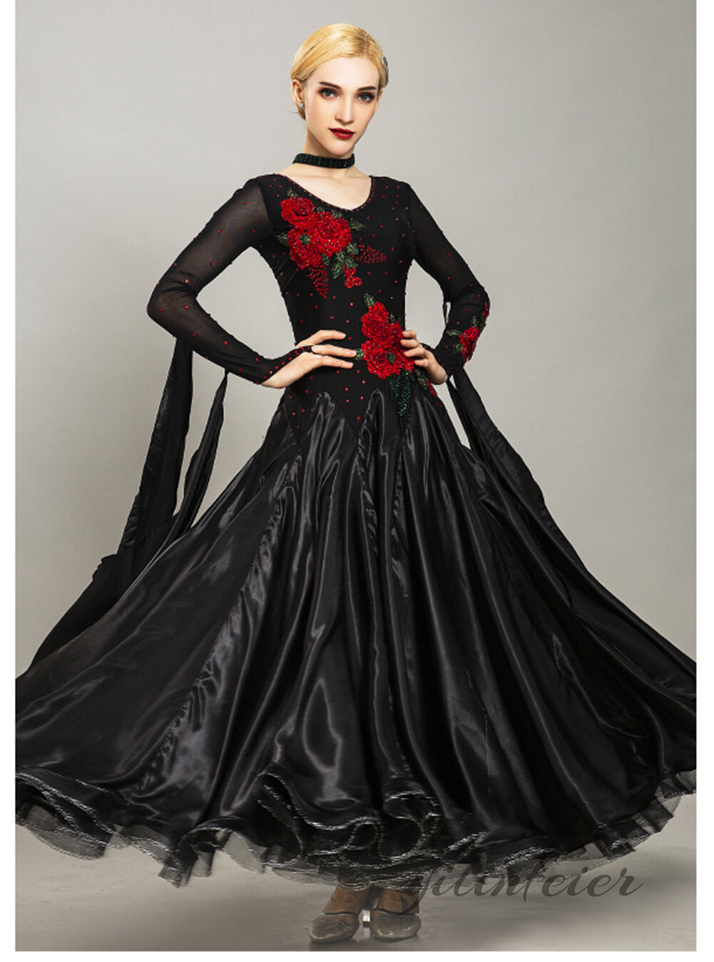 スタンダードドレス 社交ダンス レディース ダンスドレス レディース 競技ダンス 発表会 コンテスト コンクール エレガント 大合唱衣装 フラワー衣装 モダンダンス 衣装 開場ドレス