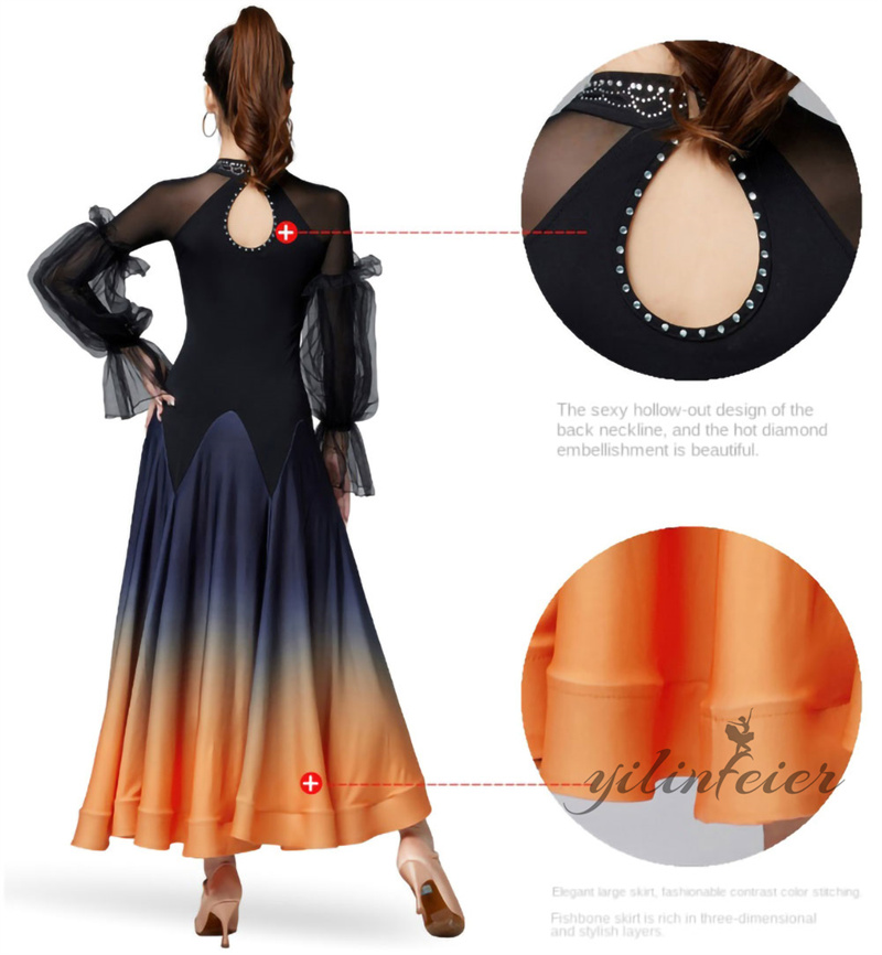★女性ワルツダンスドレス大きい裾ワルツに向きセクシーな踊りドレス ダンスドレス 舞踏 踊り ドレス 発表会用ドレス ワンピース 舞台服 社交ダンスドレス