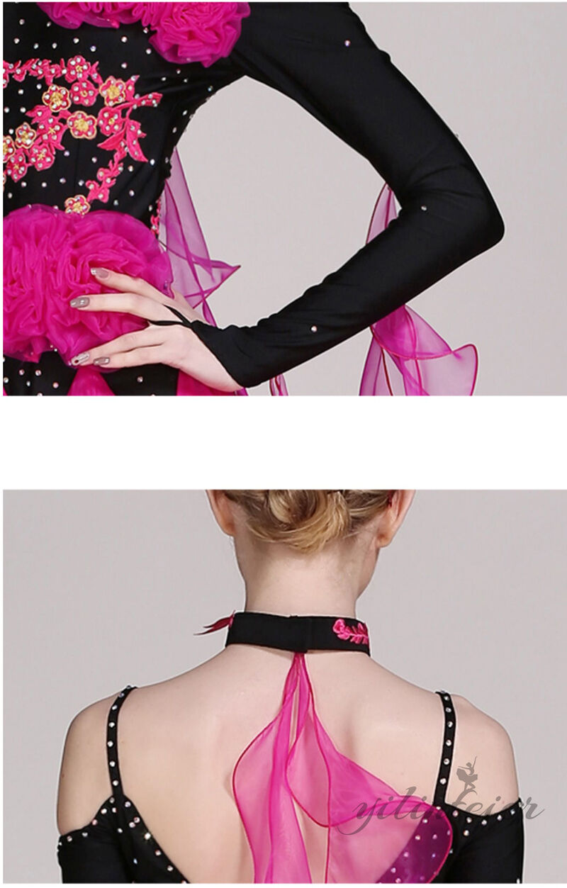 レディース 社交ダンス 競技ダンス 発表会 コンテスト コンクール フラワー衣装 社交ダンスドレス モダンダンス衣装 開場ドレス