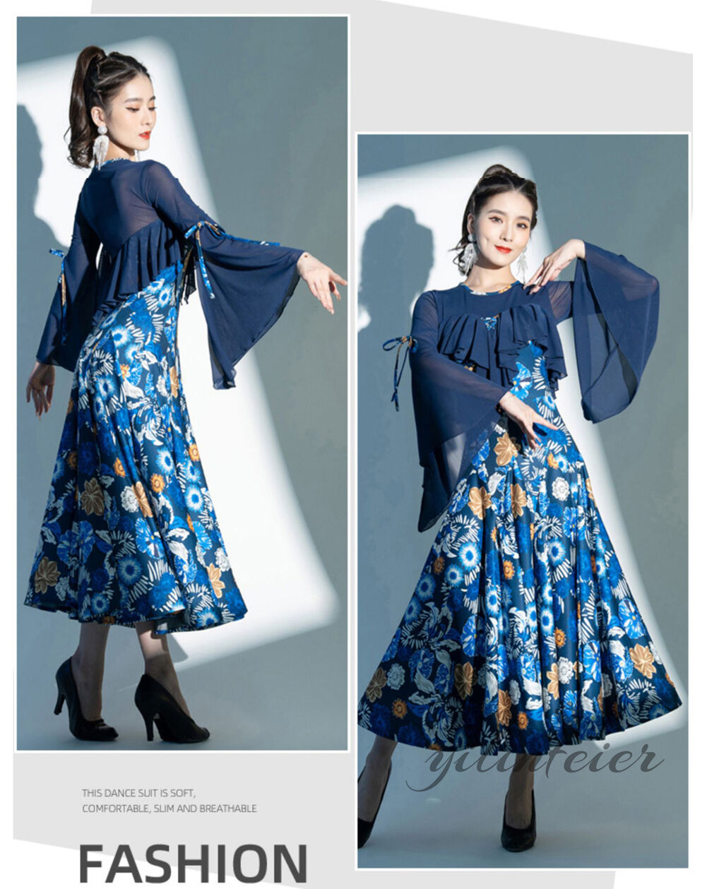 大きなスイングスカートは、360度に達することができ、さまざまなデイシング姿勢に合わせて、回転したりダイナミックな動きをしたりするのに最適です。 現代の叙情的/バレエダンサーに最適