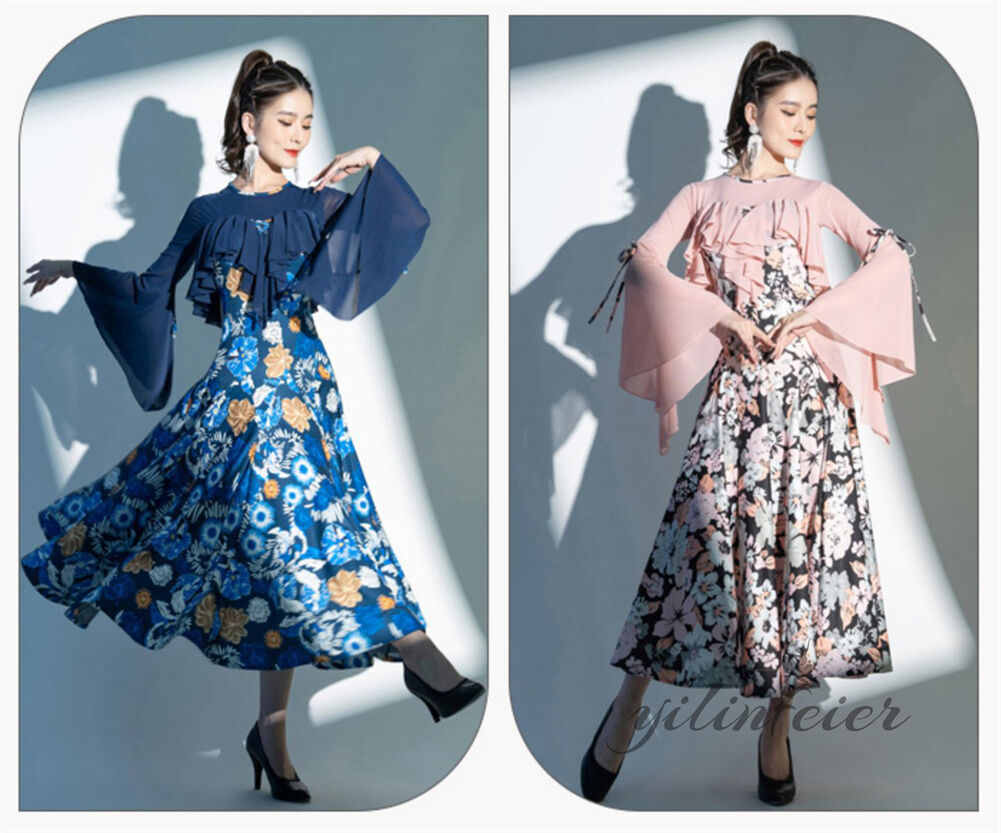 スタンダードドレス 社交ダンス レディース ダンスドレス レディース 競技ダンス 発表会 コンテスト コンクール エレガント 大合唱衣装 フラワー衣装 モダンダンス 衣装 開場ドレス
