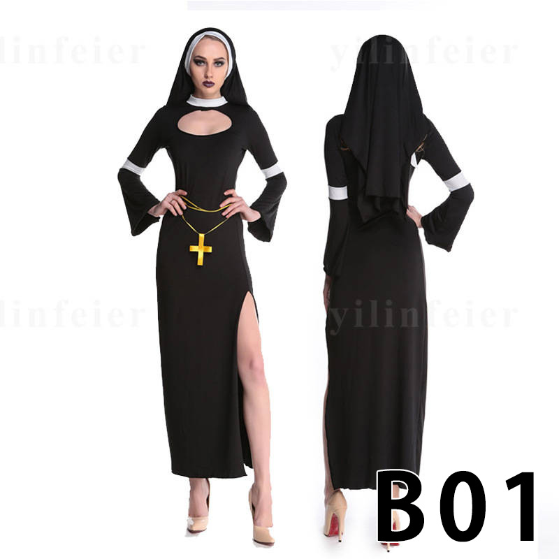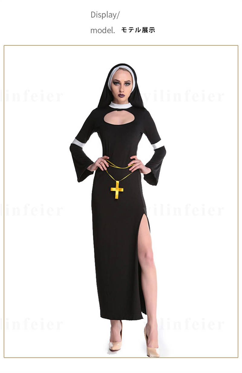 ハロウィン コスプレ 仮装 シスター 十字架 長袖 コスチューム 仮装 レディース かわいい 可愛い 男女兼用 雰囲気抜群のコスチューム 黒基調でかっこいい