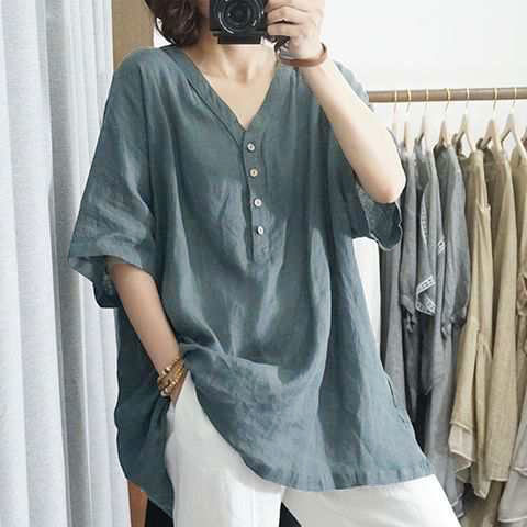 綿麻 シャツ ブラウス 半袖 レディー