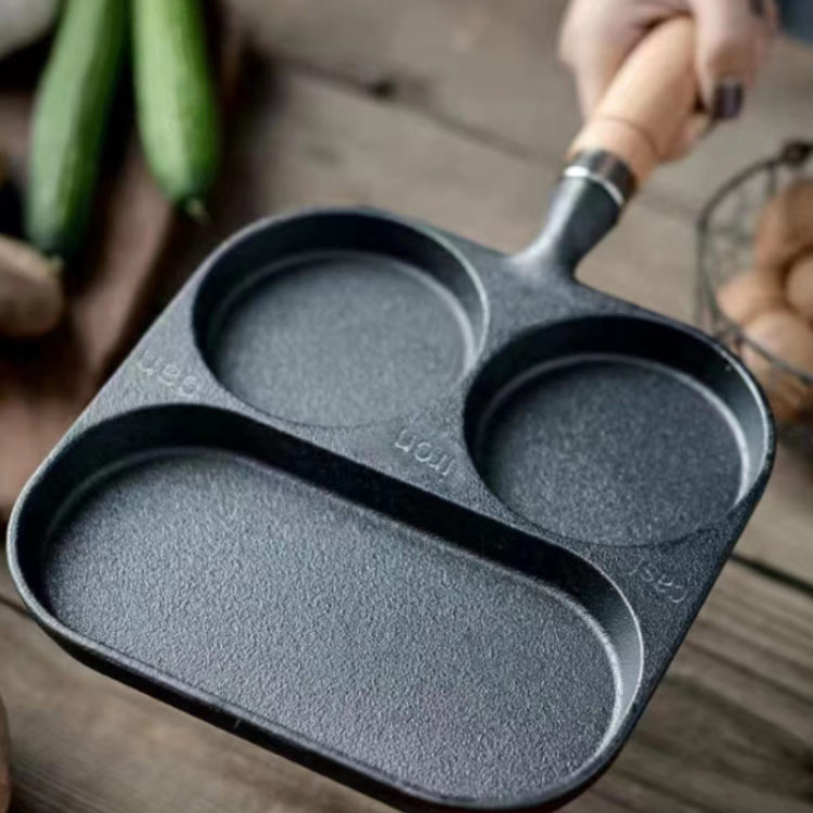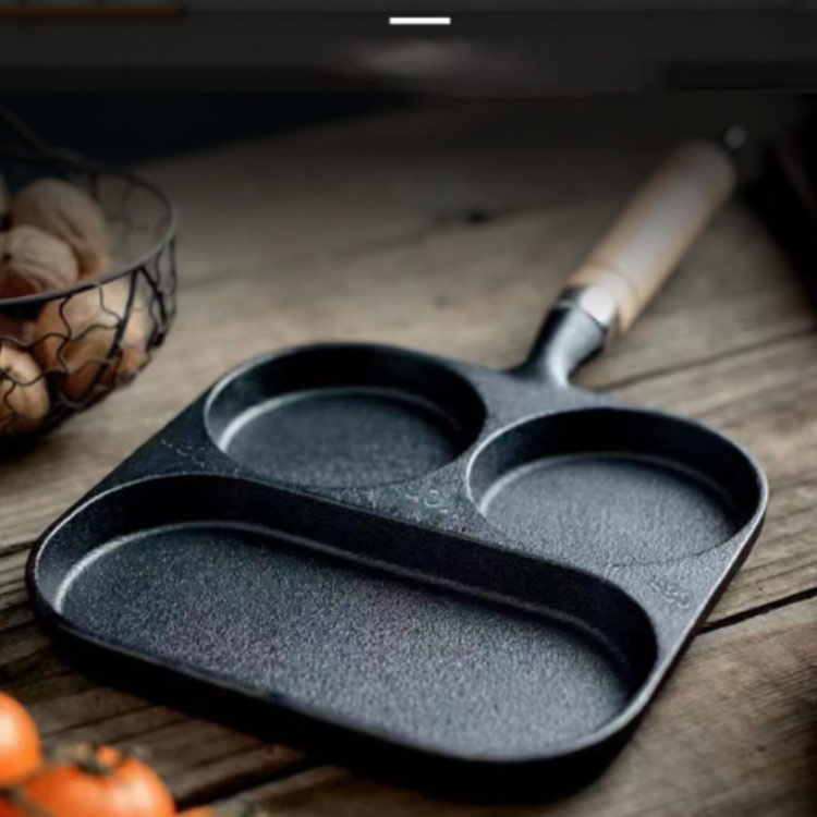 お弁当や朝食作りが時短に 3穴 仕切り付きフライパン 鉄鍋 マルチパン 鋳物 鉄製品 仕切り付き フライパン 卵焼き 玉子焼き