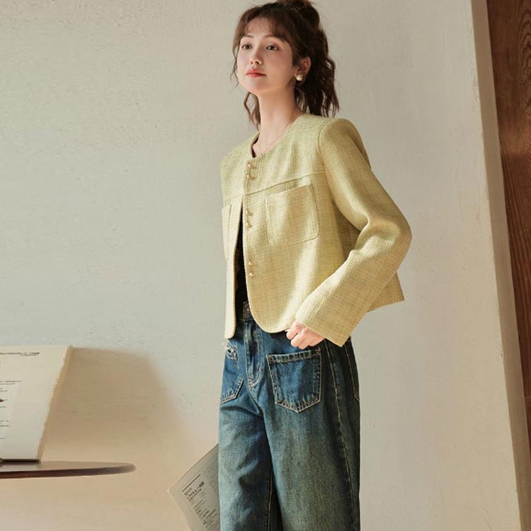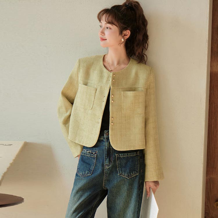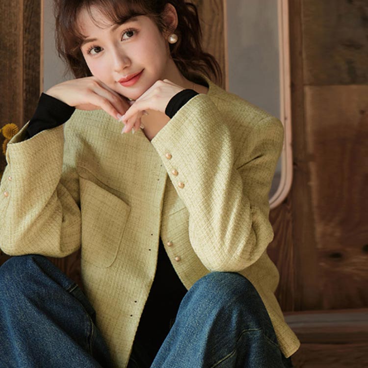 ノーカラージャケット ツイードジャケッ