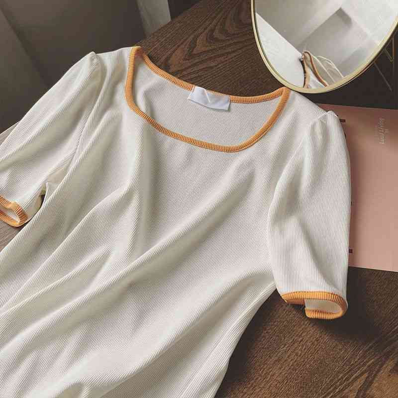 サマーニット 配色 トップス 着痩せ
