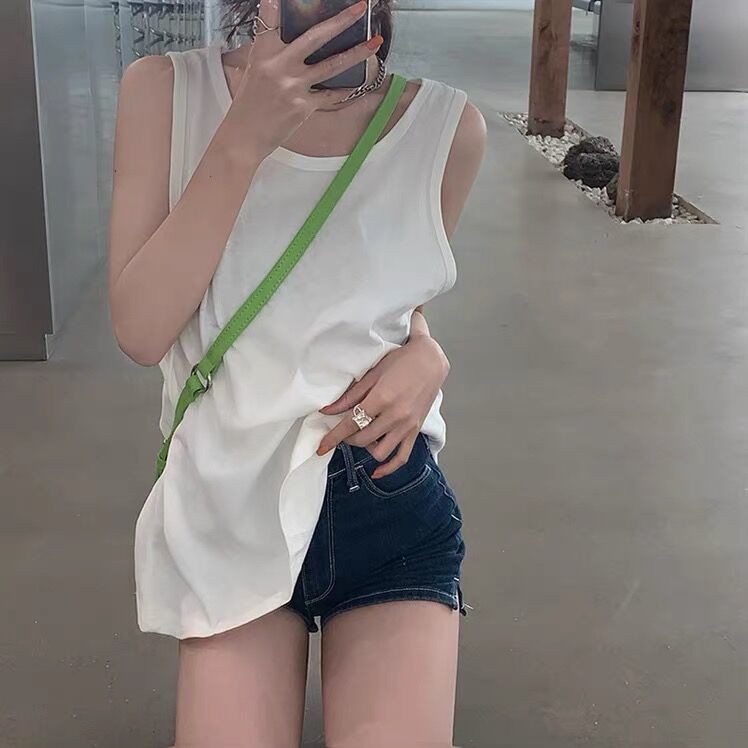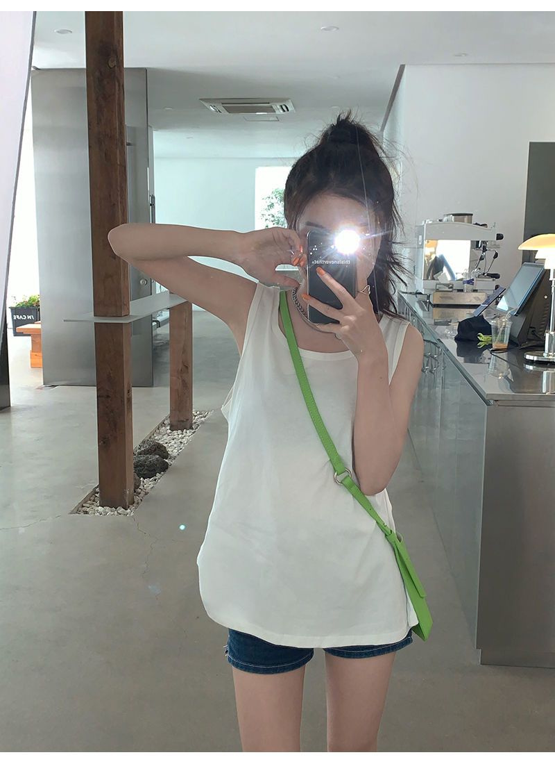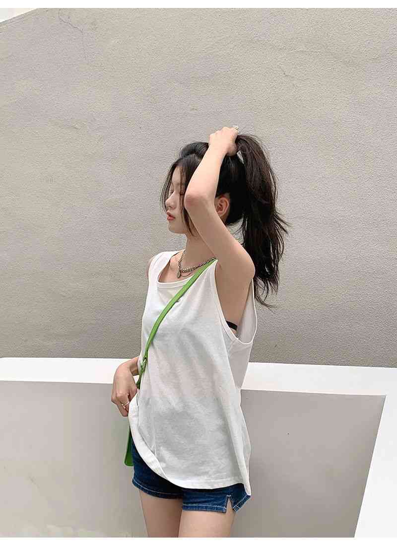 タンクトップレディースTシャツノースリーブUネックロゴプリント
