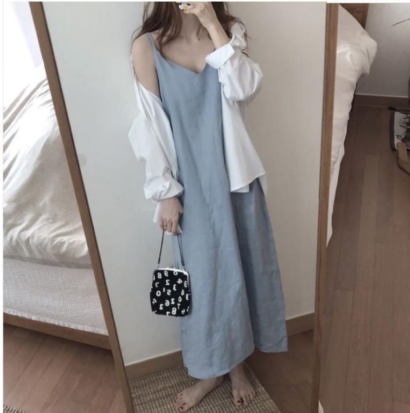 キャミソールワンピース 綿麻 ロング丈