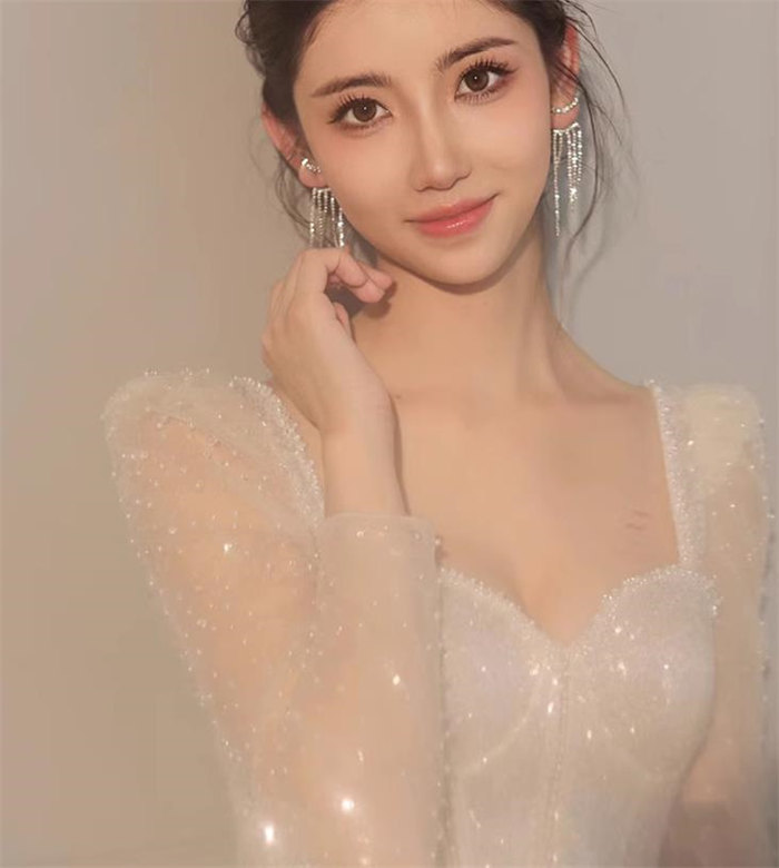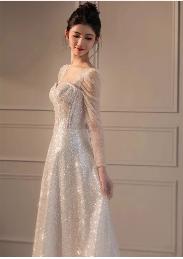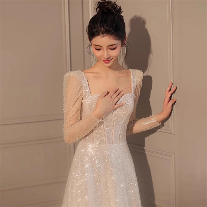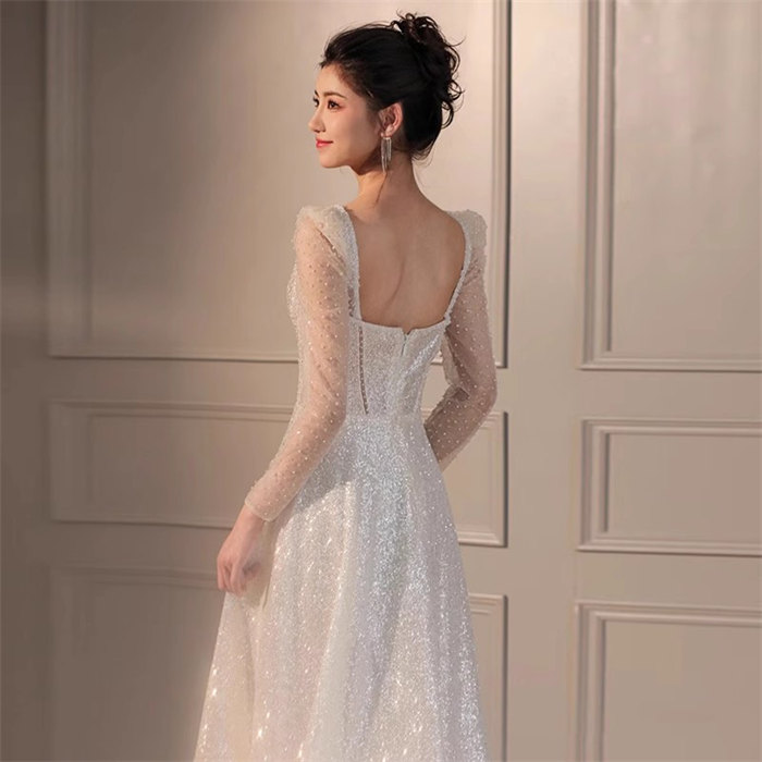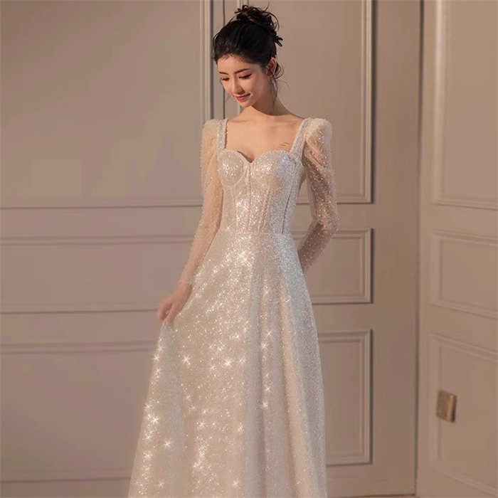 ホワイトロング ウェディングドレス 長