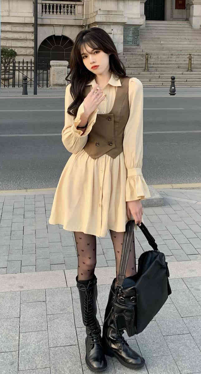 カラー: ブラウンベスト ベージュワンピ