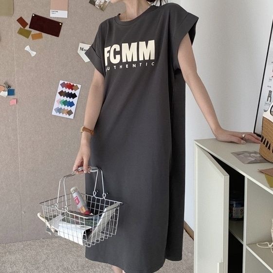 タンクトップレディースTシャツノースリーブUネックロゴプリント