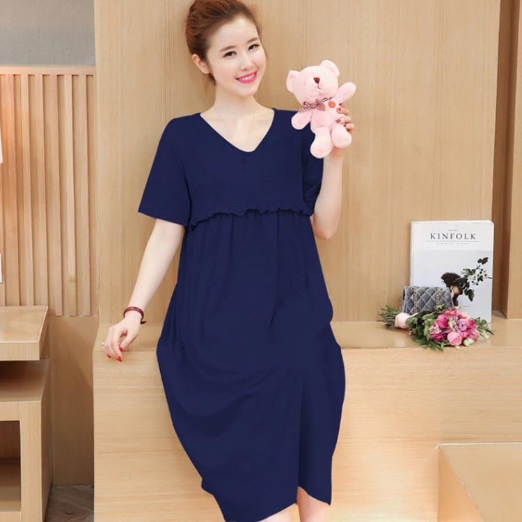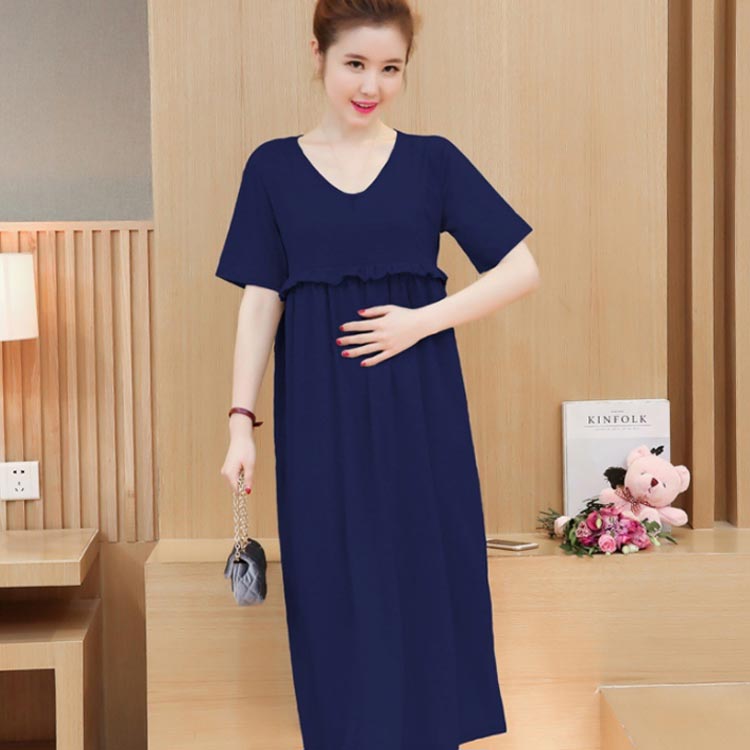 マタニティ ワンピース 半袖 ロング丈