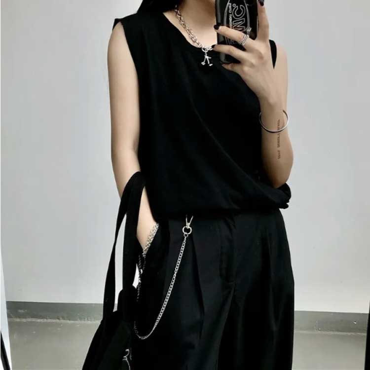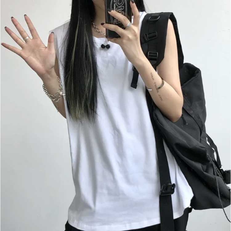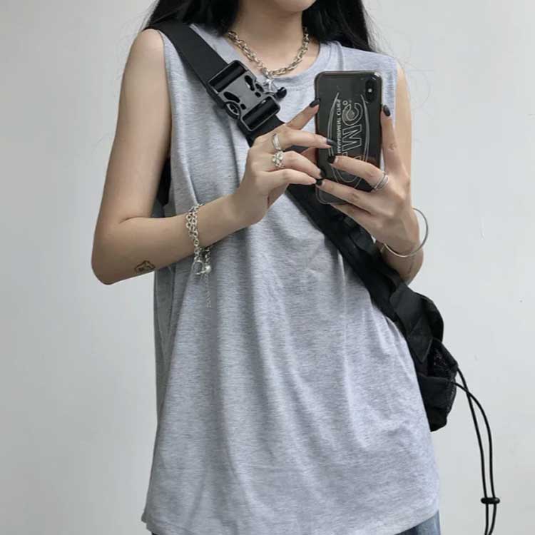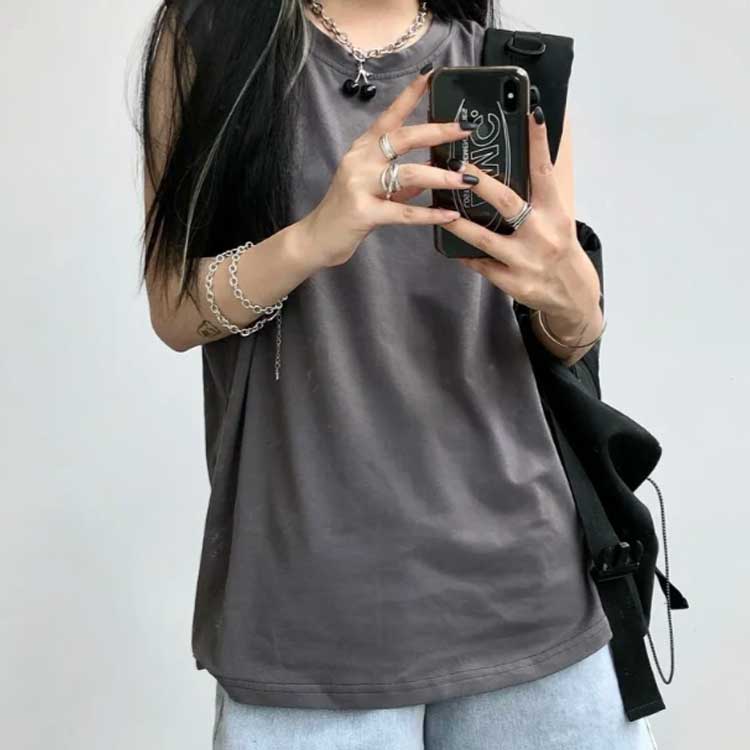 タンクトップレディースTシャツノースリーブUネックロゴプリント
