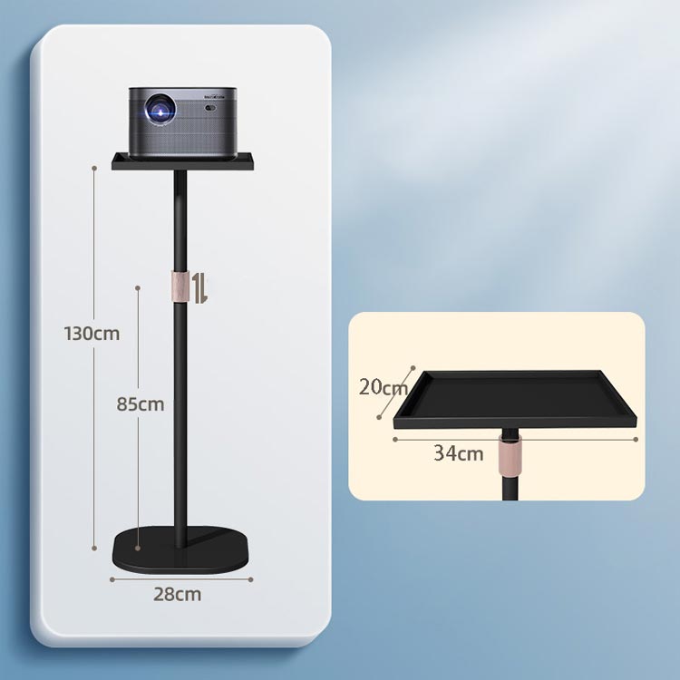 4、プロジェクターを1/4ネジ式取り付け雲台にセットすれば完成です。サイズ耐荷重5kgサイズについての説明台座:幅28cm、高さ85-130cm素材炭素鋼、ABS色トレイ付きタイプ1(65-120cm) 床置きタイプ(85-130cm) 壁寄せタイプ(85-130cm) トレイ付きタイプ2(85-130cm)備考●サイズ詳細等の測り方はスタッフ間で統一、徹底はしておりますが、実寸は商品によって若干の誤差(1cm~3cm )がある場合がございますので、予めご了承ください。