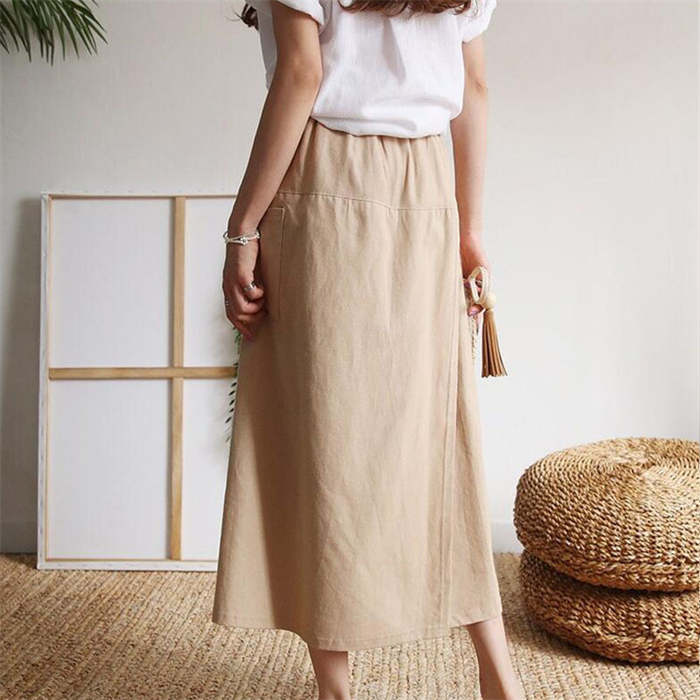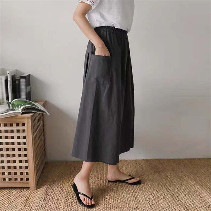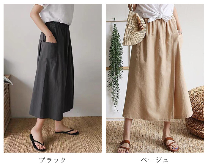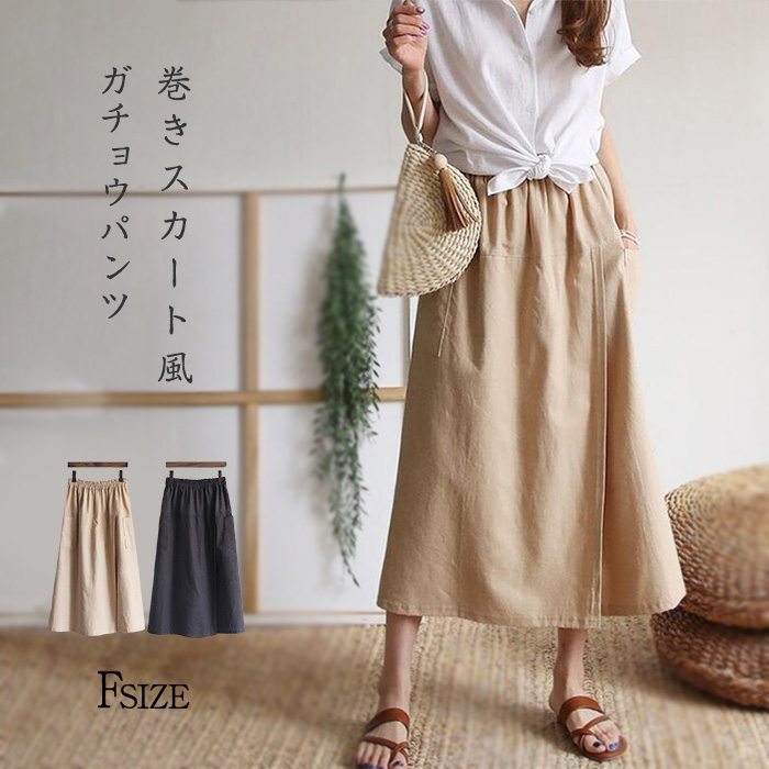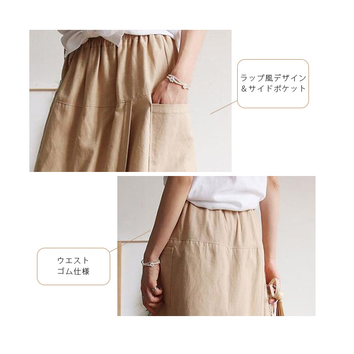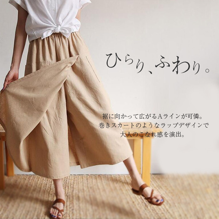 前から見ると巻きスカートのように見える