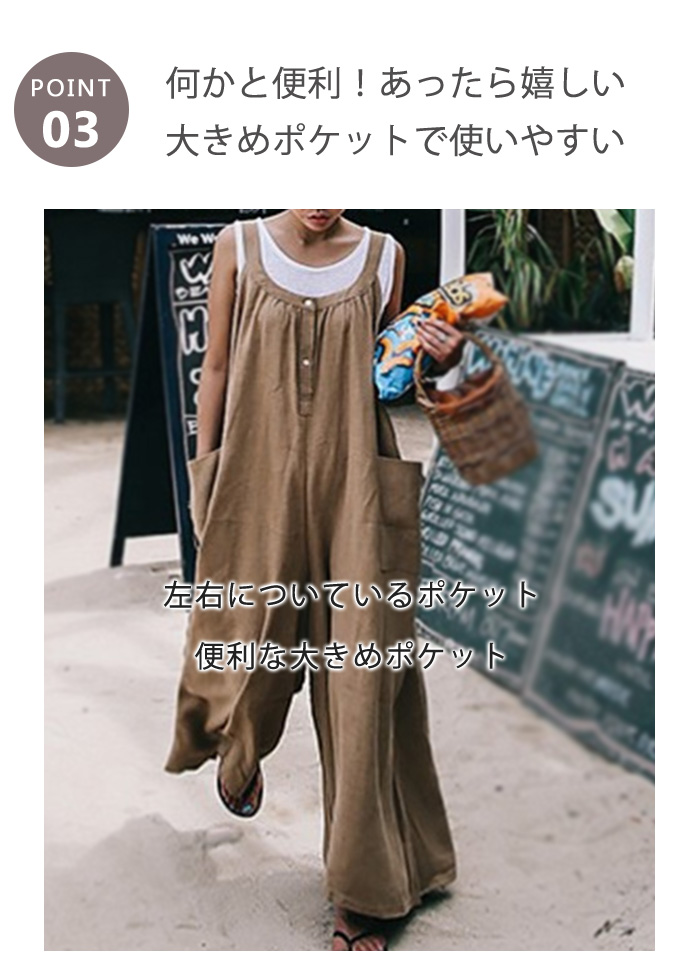 大人の抜け感~ 綿麻素材 サロペットパ