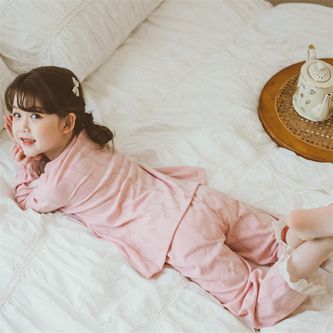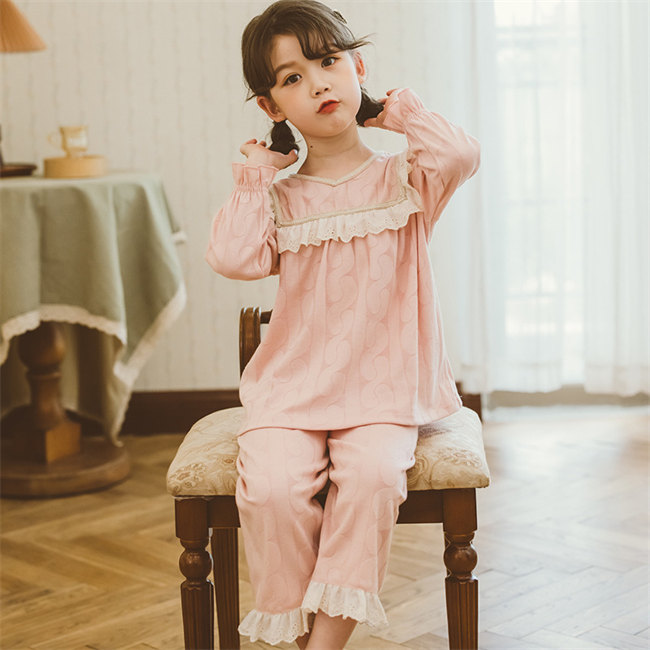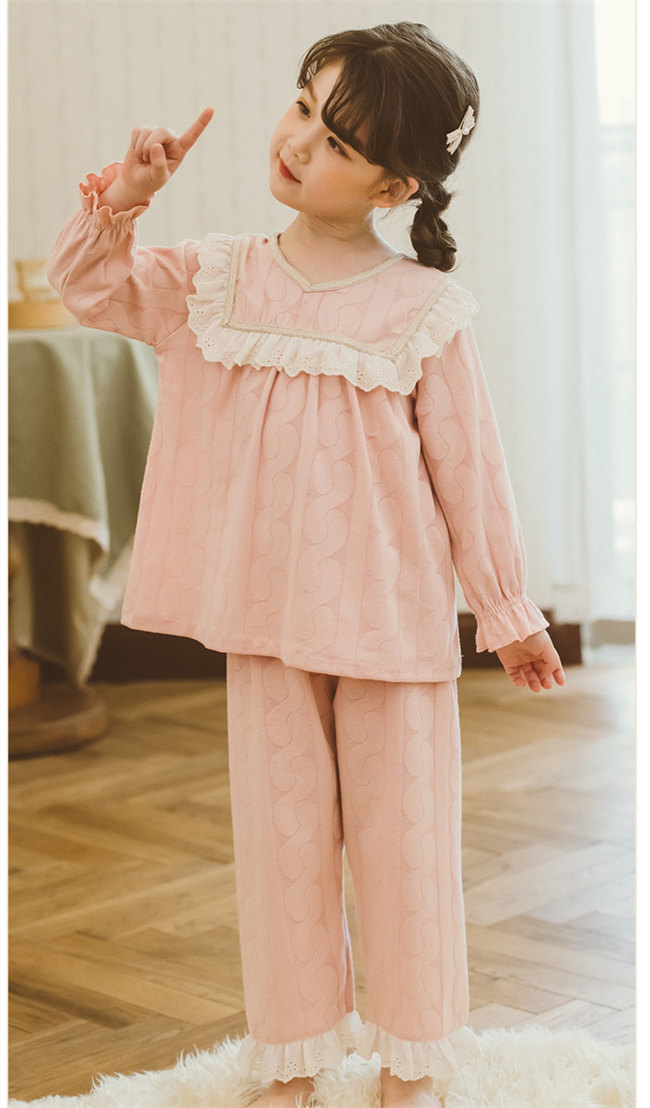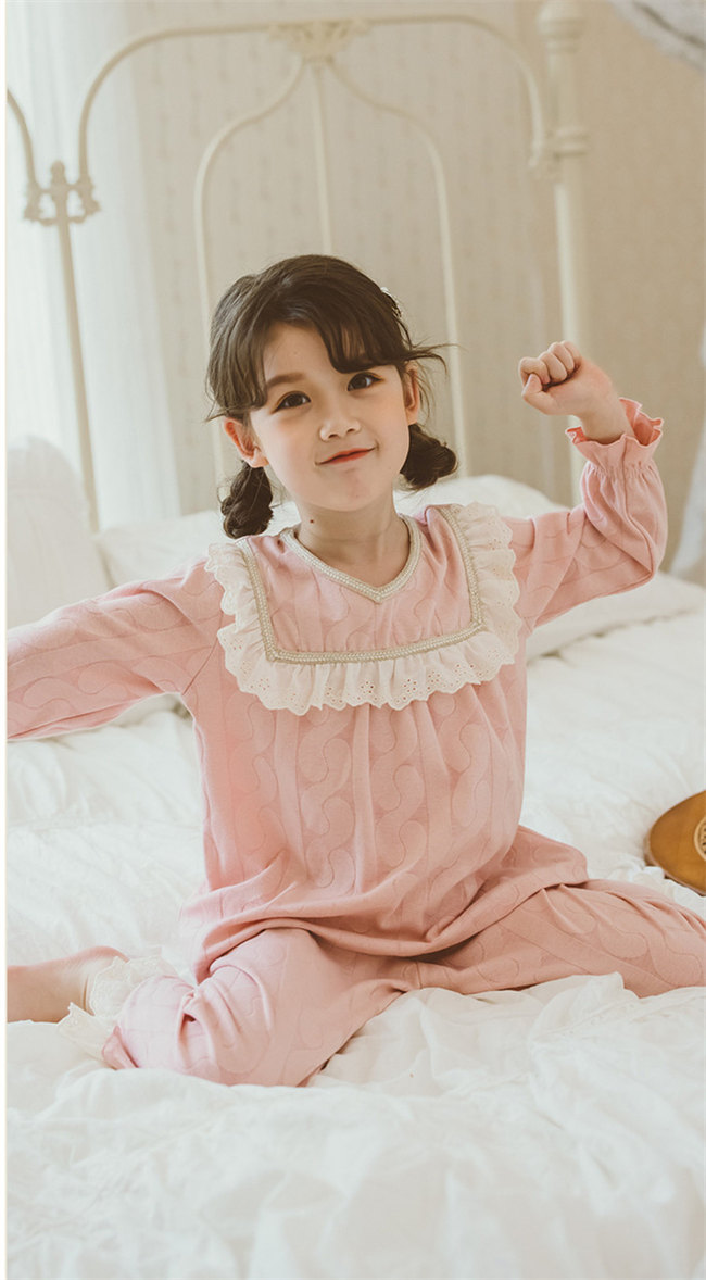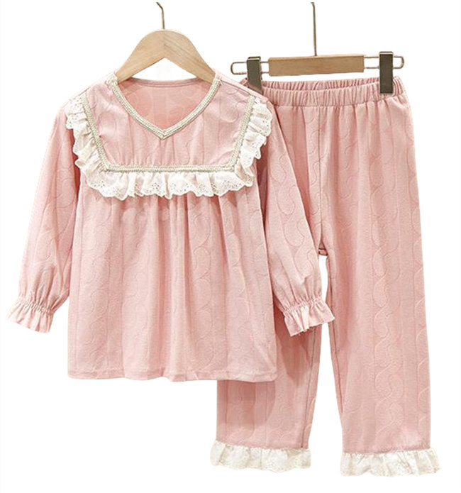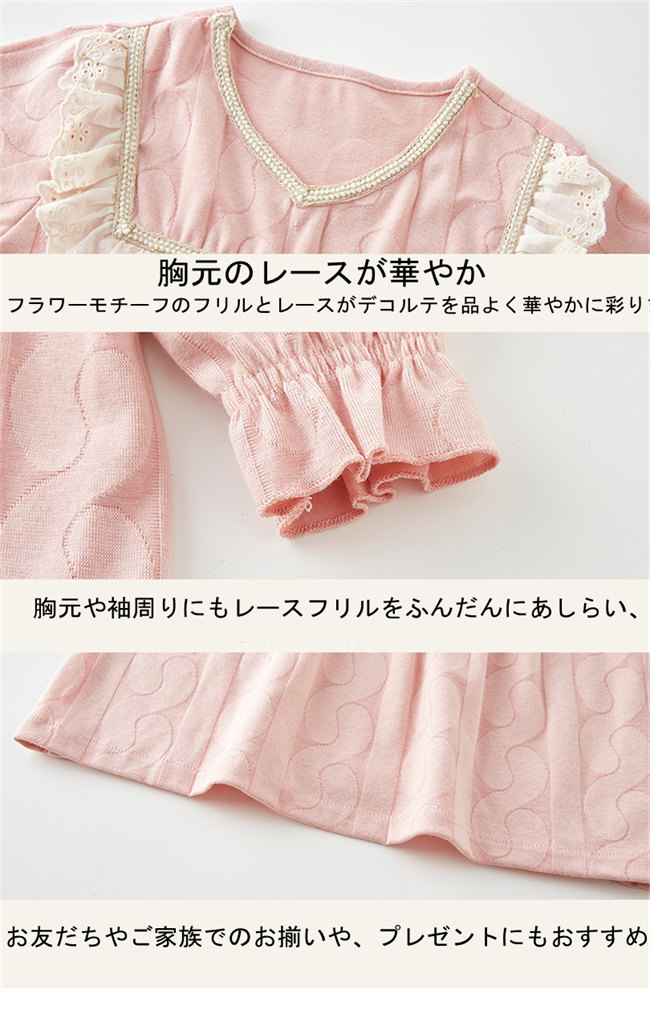 パジャマ キッズ メリヤス 女の子 レディース かわいい裾フリル ジュニア おしゃれ 長袖 部屋着 長袖 子供 薄手 ルームウェア プリンセス 妖精 レース お姫様 ピンク可愛い柄上下セットセットアッ