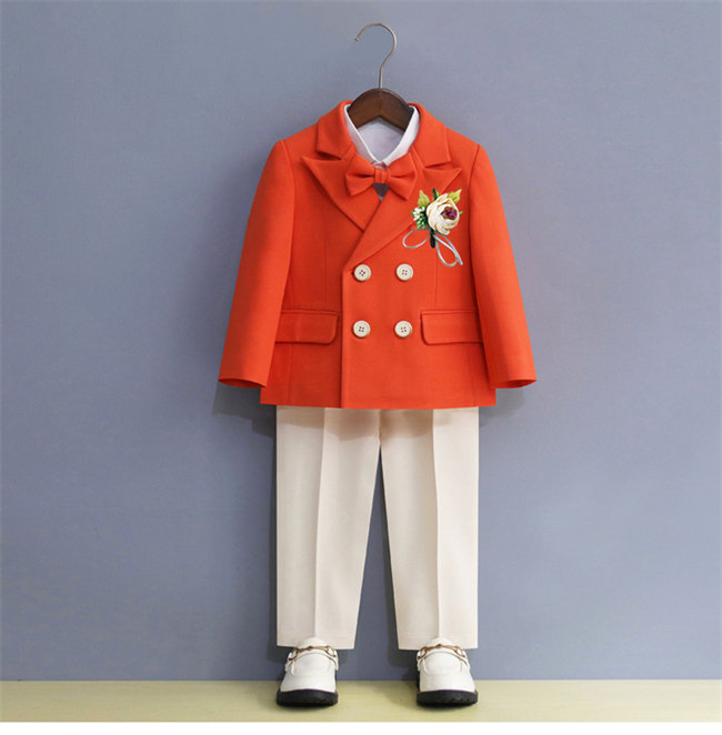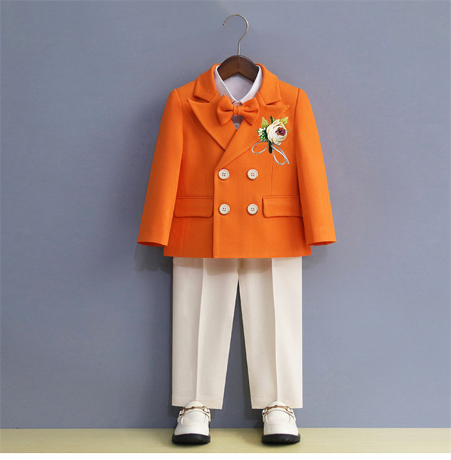 イエロー素地キッズスーツセット子供スーツ キッズ服 男の子衣装女の子衣装ズボン、コート2点セット上下セットセットアップ演出 入園式 発表会 七五三 結婚式フォーマル90CM 100CM 110CM 1