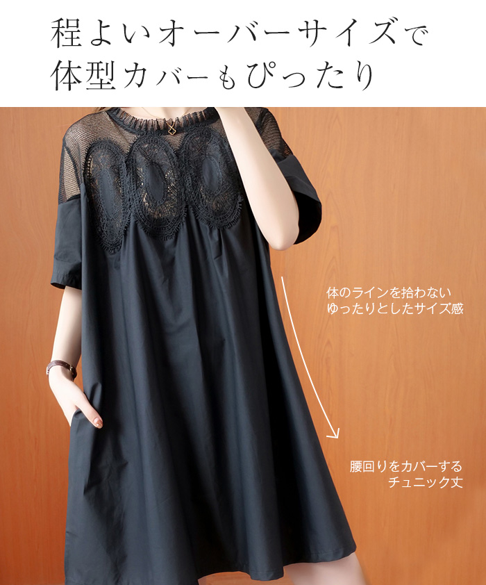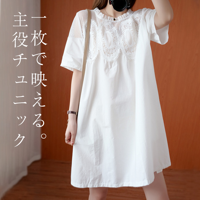 レディース チュニック 半袖 丸首 薄