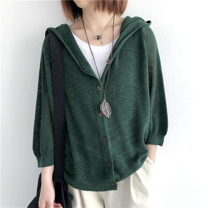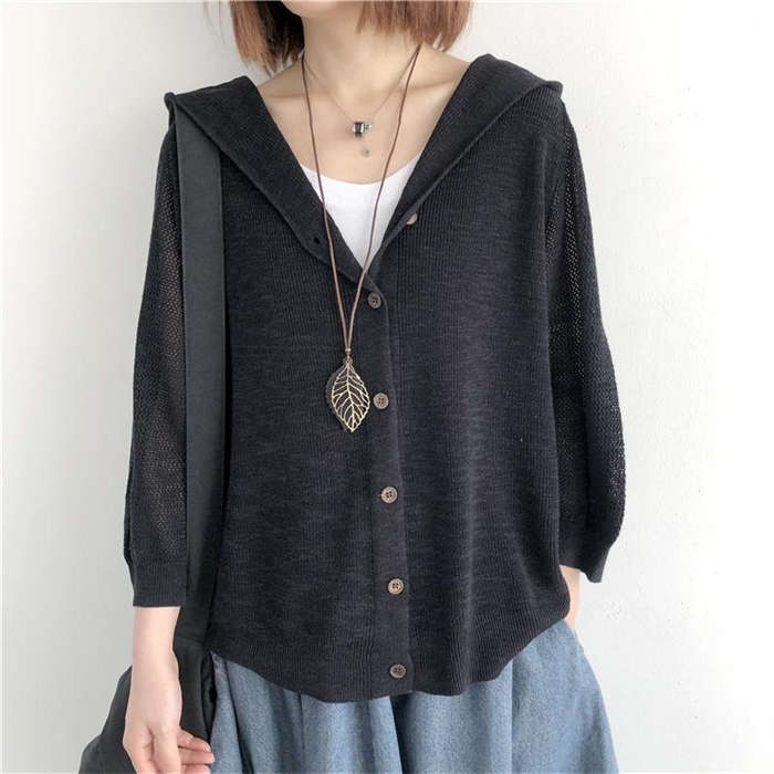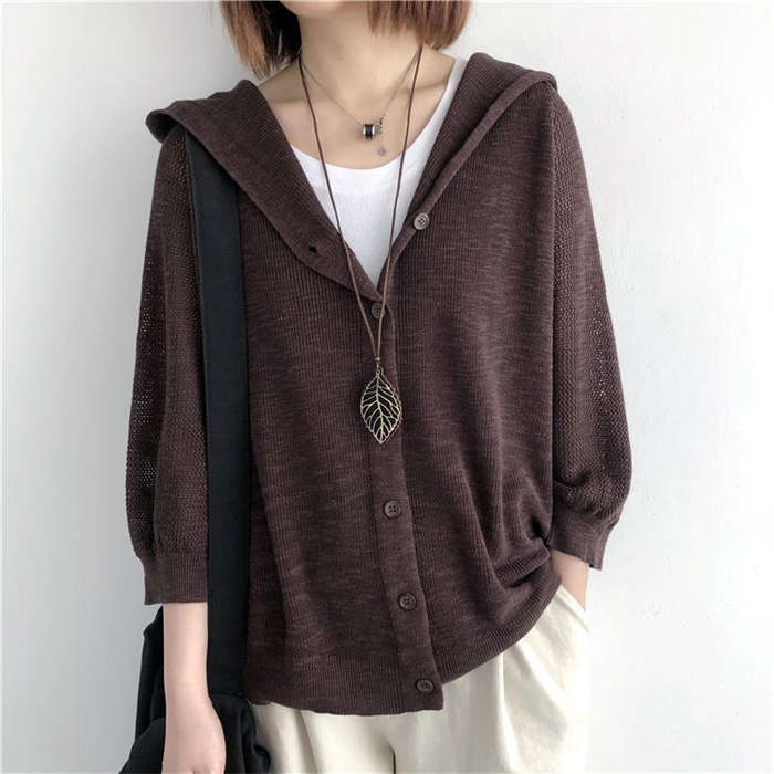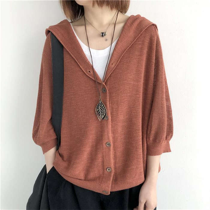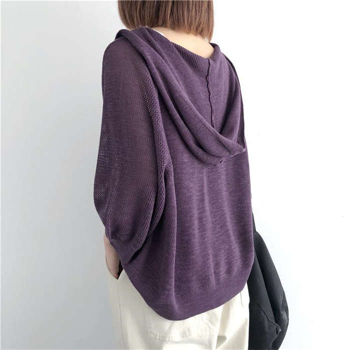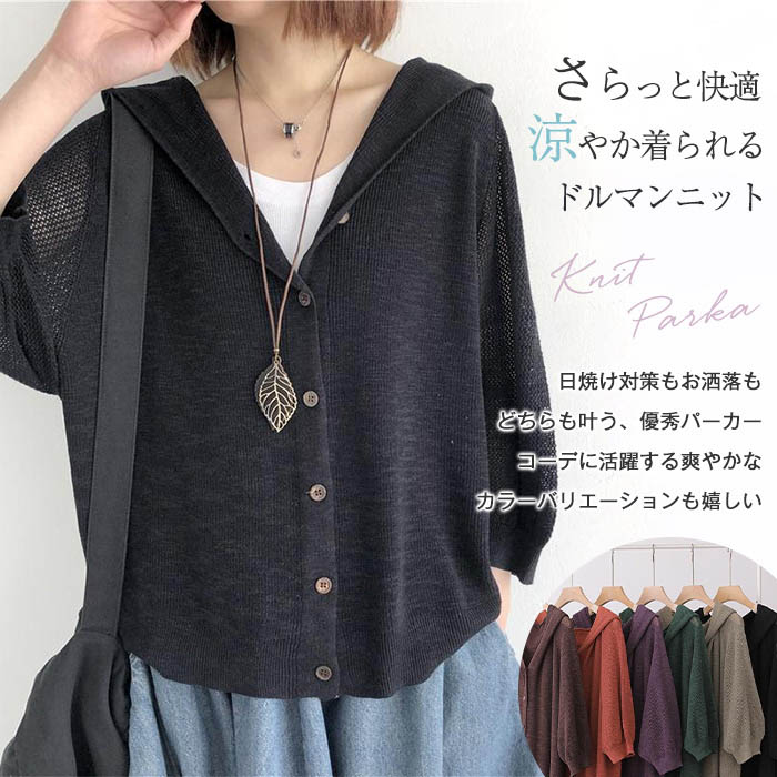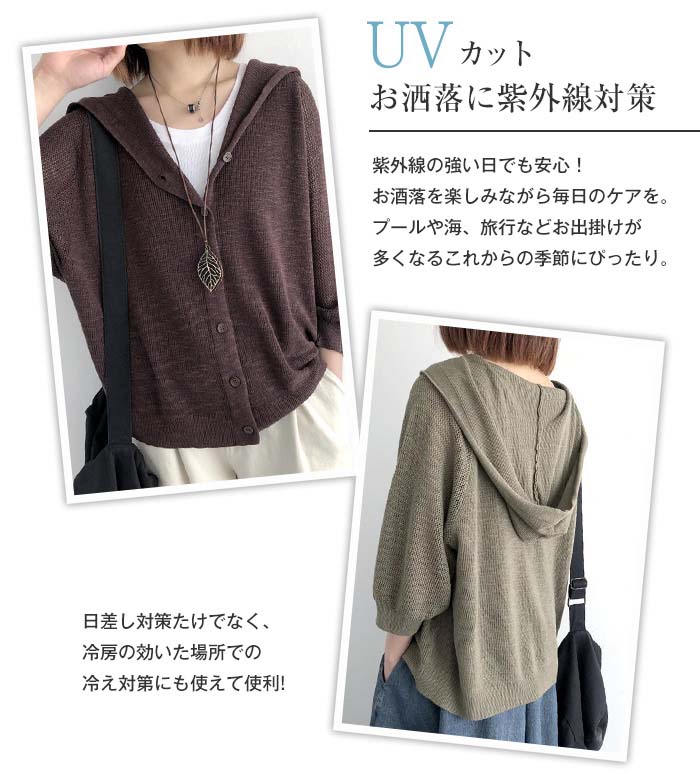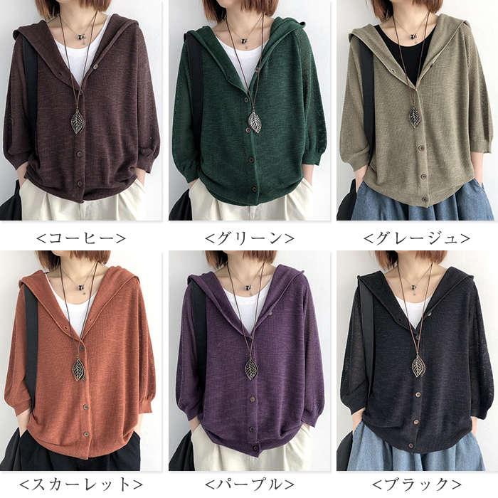 大人が羽織れるフード付きニットカーデ♪