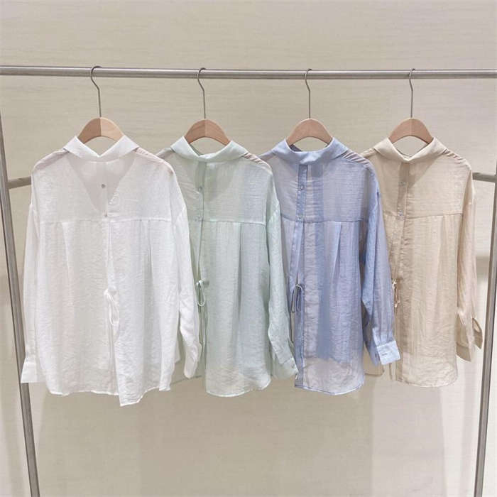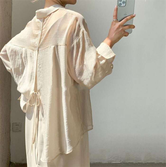 シアースリーブ ドッキングシャツ ボウタイシャツブラウス