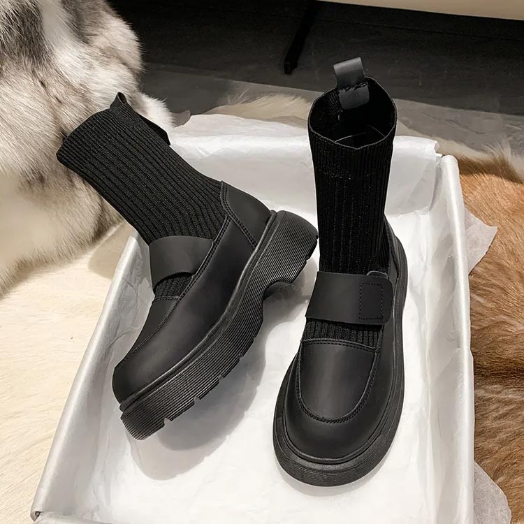 秋 厚底ブーツ PUレザー ボリューム