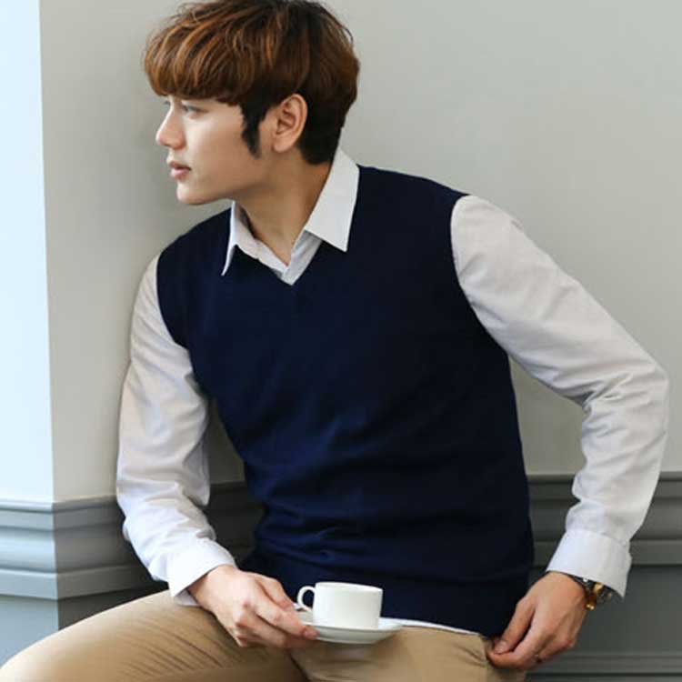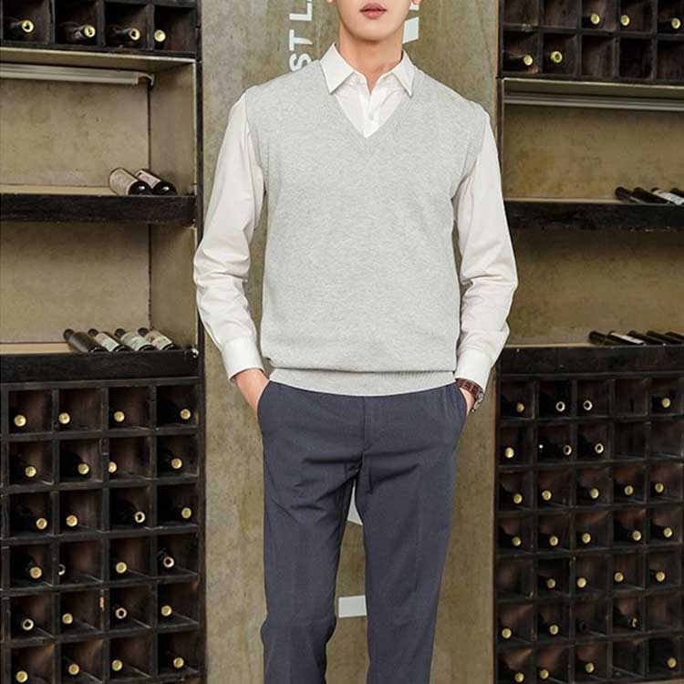 ニットベストメンズネック保温防寒重ね着