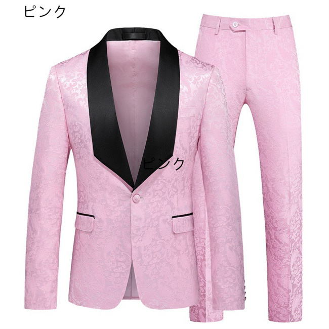 5色入荷 ストライプメンズスーツスーツセット上下セット セットアップ2点セット花柄タキシードメンズ タキシード パンツ演出服 華麗な王族服 王子様 ヨーロッパ風 復古風 コスプレ衣装宮廷服コスチューム