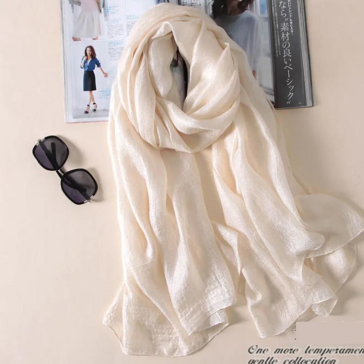 防寒対策 ショール 綿麻風 無地 オフ