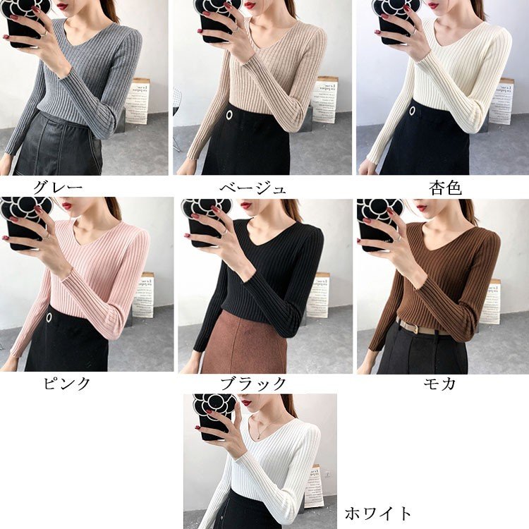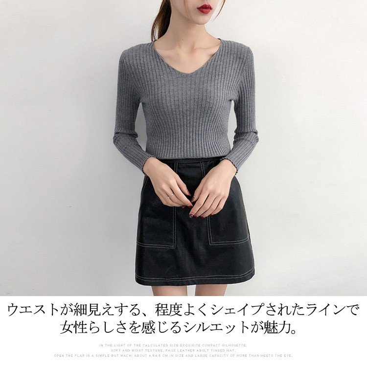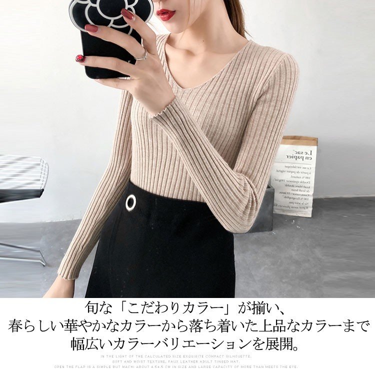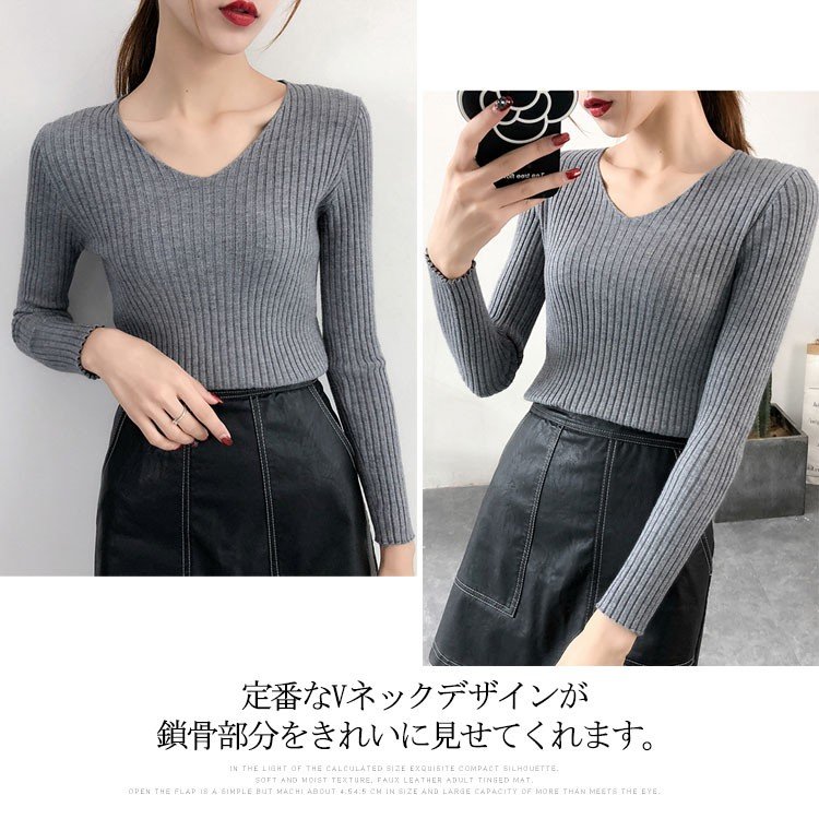 Vネック ニット レディース リブニッ