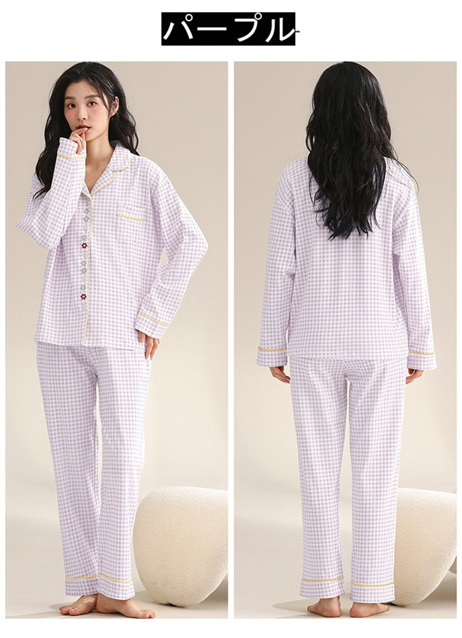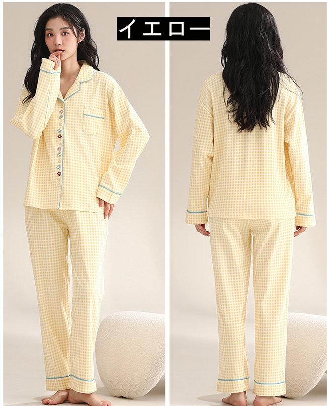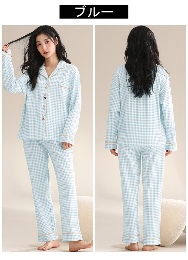 3色展開レディースパジャマ長袖ルームウ