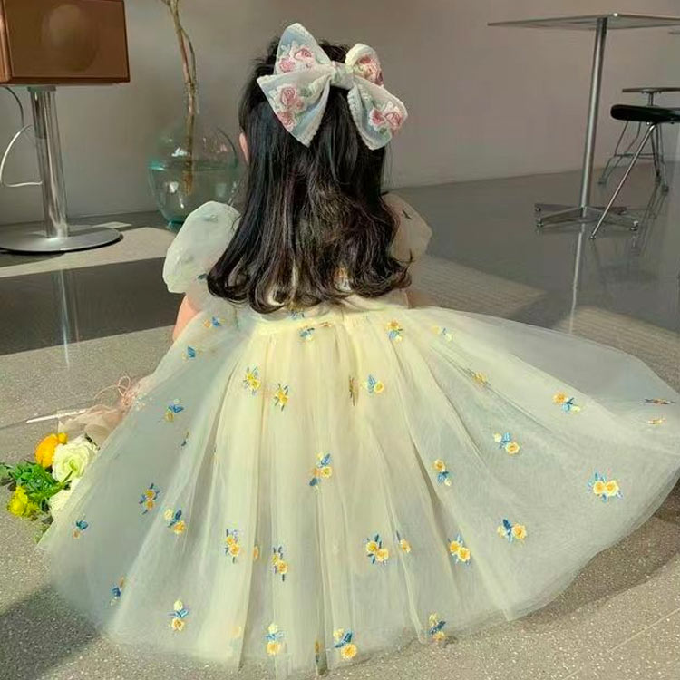 子供ドレス チュールワンピース シースルワンピース 長袖 クルーネック フレアワンピース ガールズ キッズ レースワンピース 女の子ジュニアドレス 発表会 フラワーガールドレス チュール お姫様ドレス