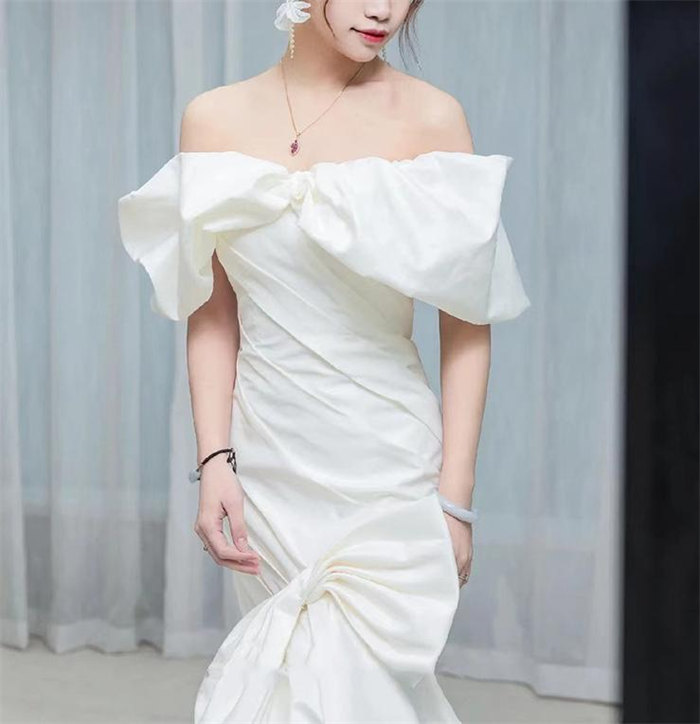ホワイトウェディングドレスオフショルダー ロングドレス ウェディングドレス パーティードレス二次会ドレスブライダル撮影XXS XS S M L XL 2XL 3XLレディースドレス トレーンマーメイド