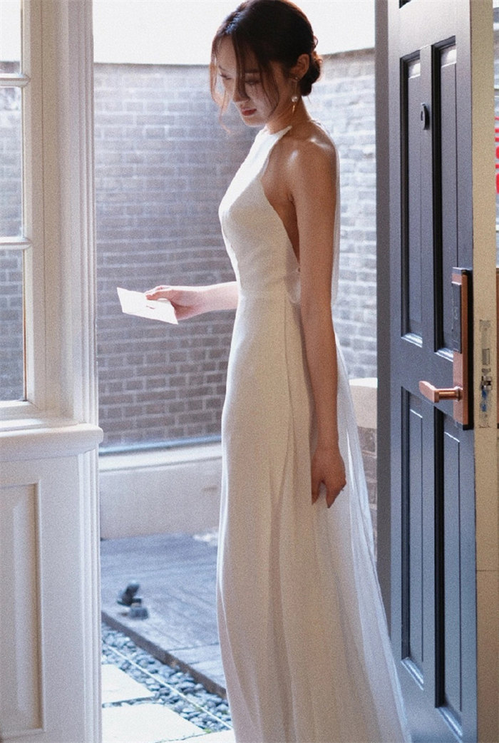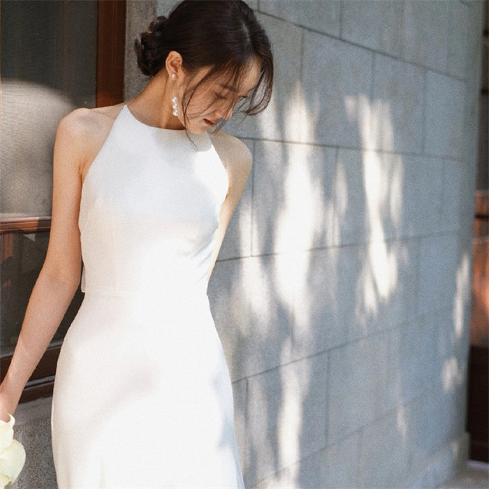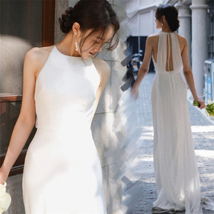 ホワイトウェディングドレスAライン ロ