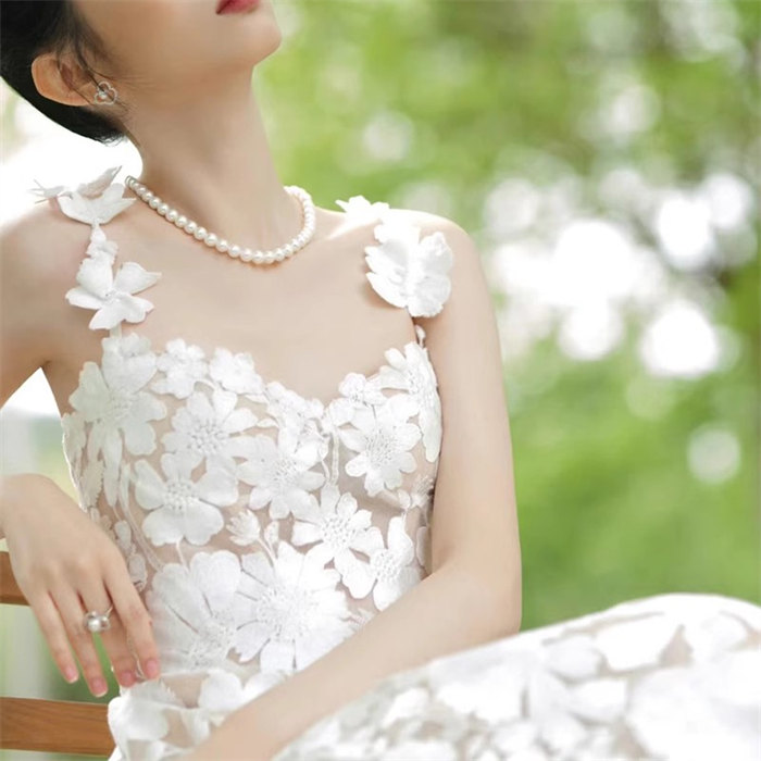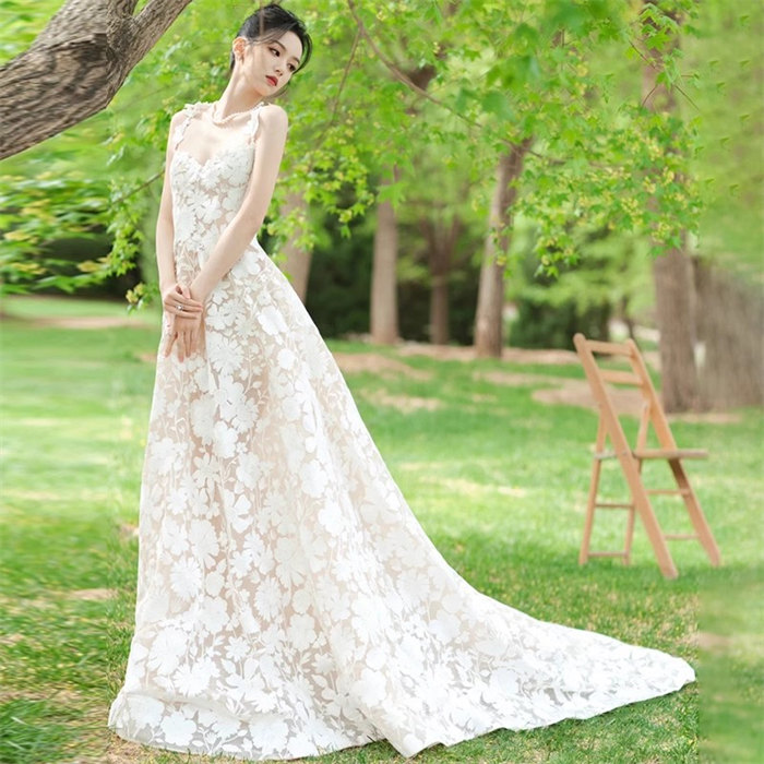 ホワイト 総レース ウェディングドレス