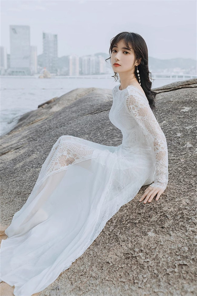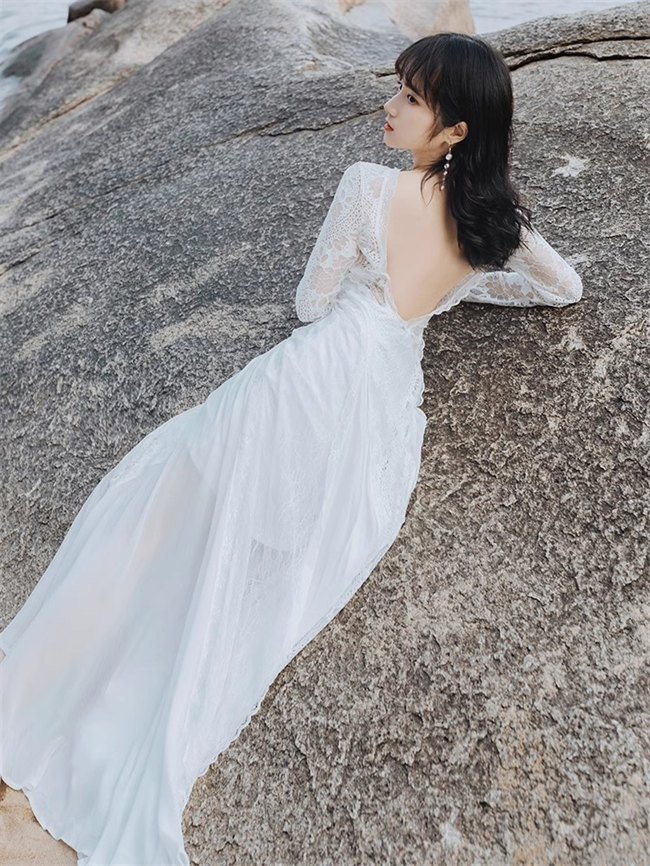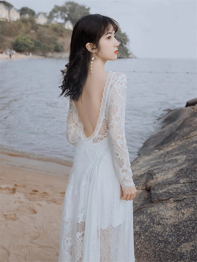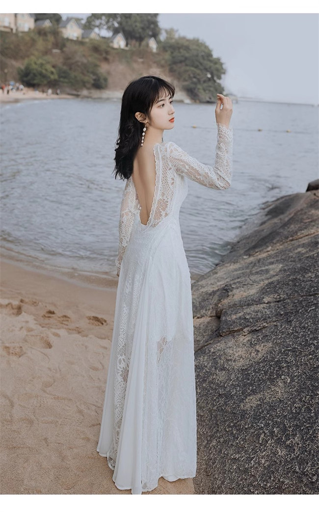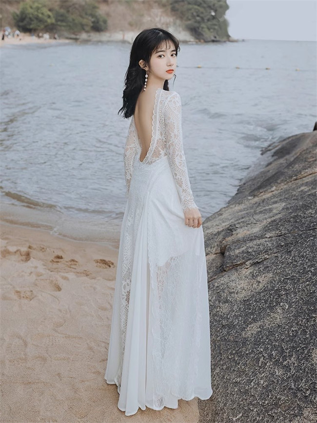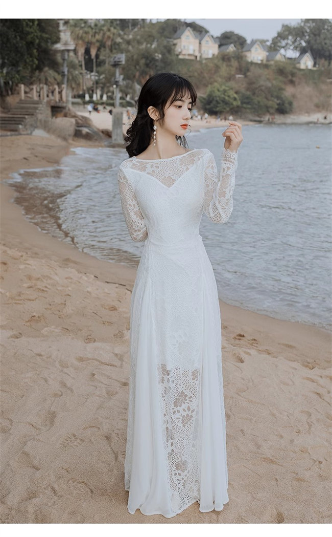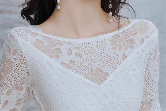ホワイト 総レース ウェディングドレス