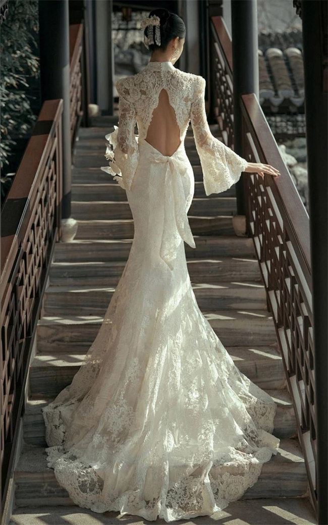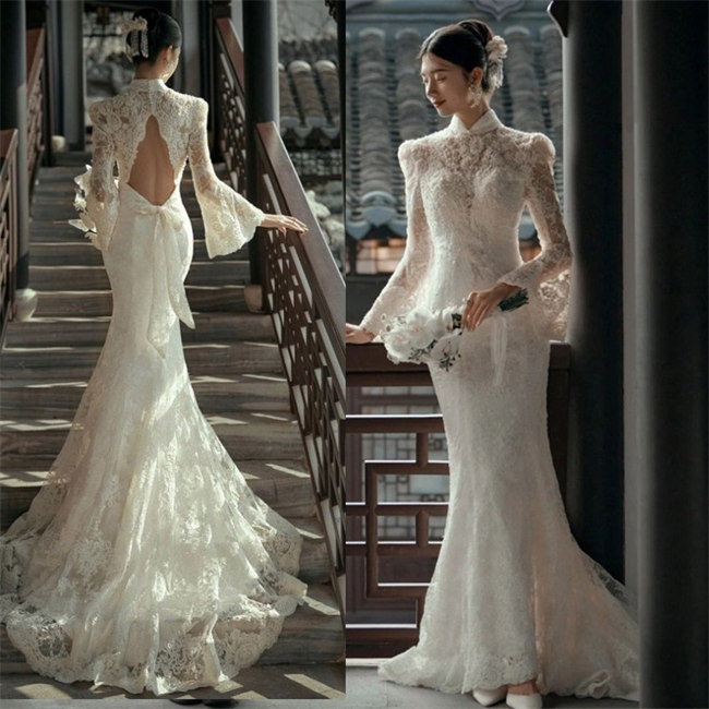 総レースホワイト ウェディングドレスマ