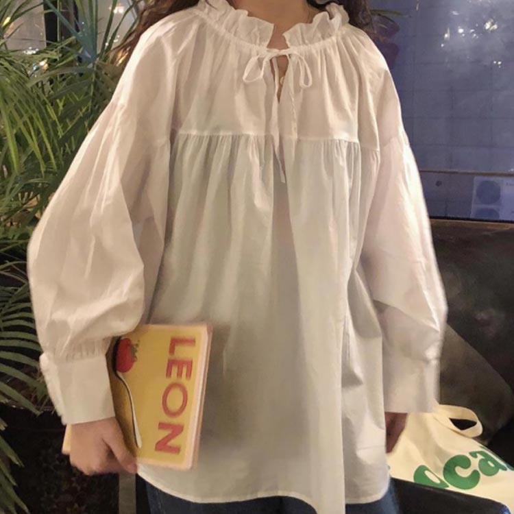 シアースリーブ ドッキングシャツ ボウタイシャツブラウス