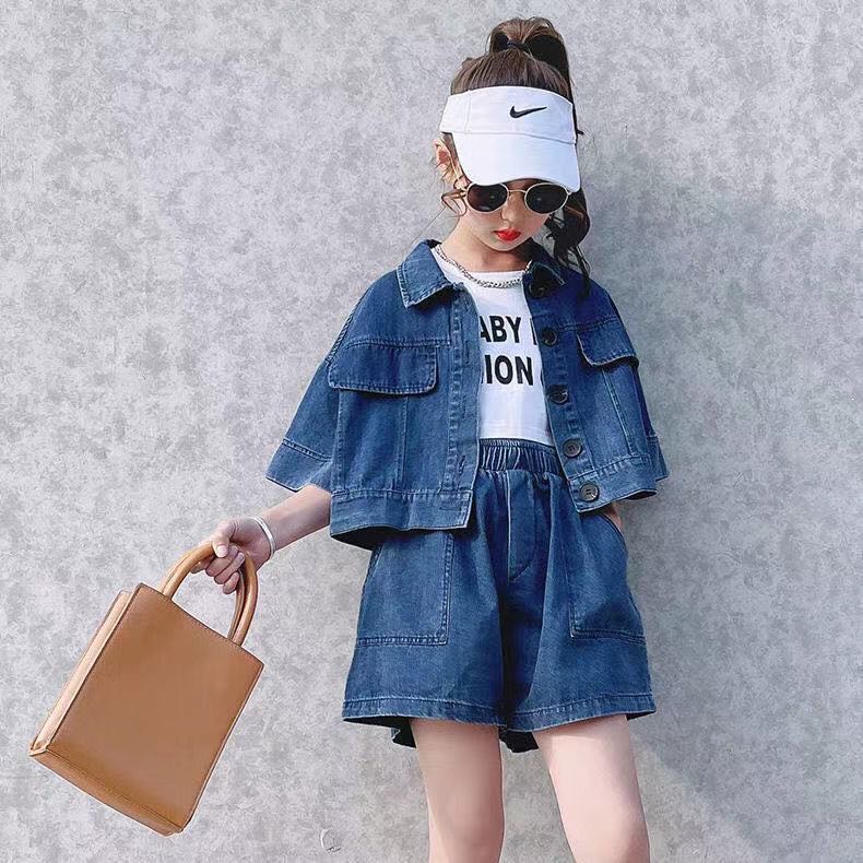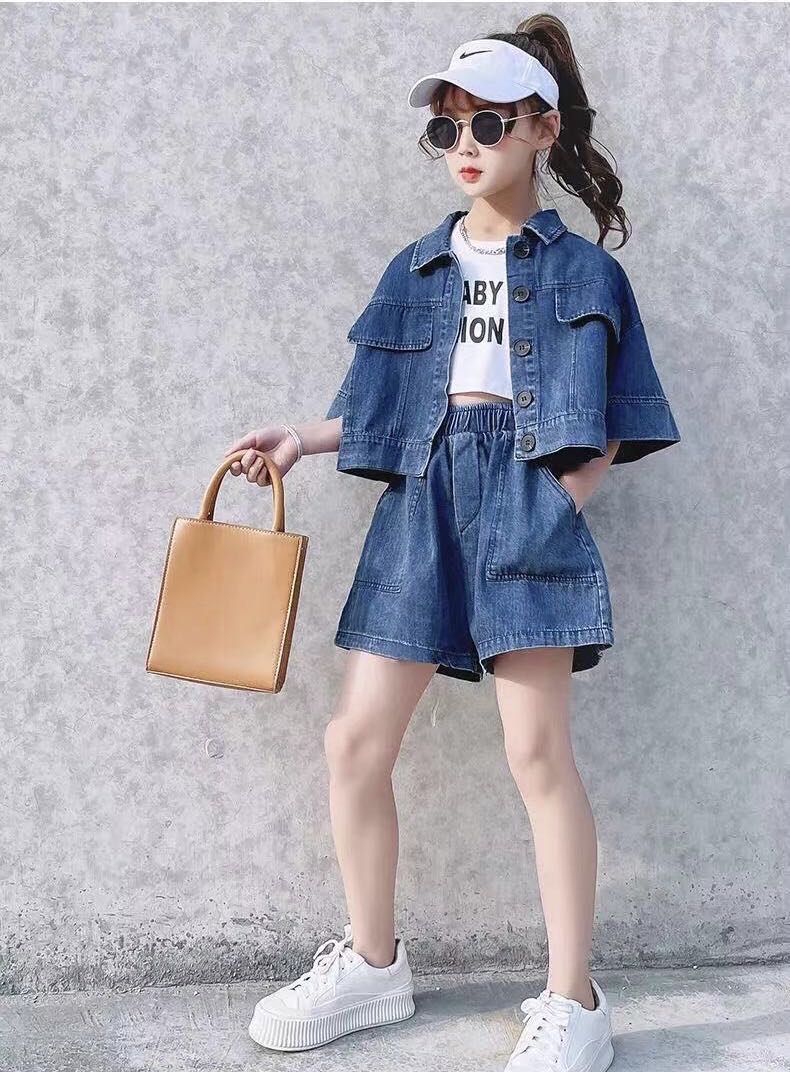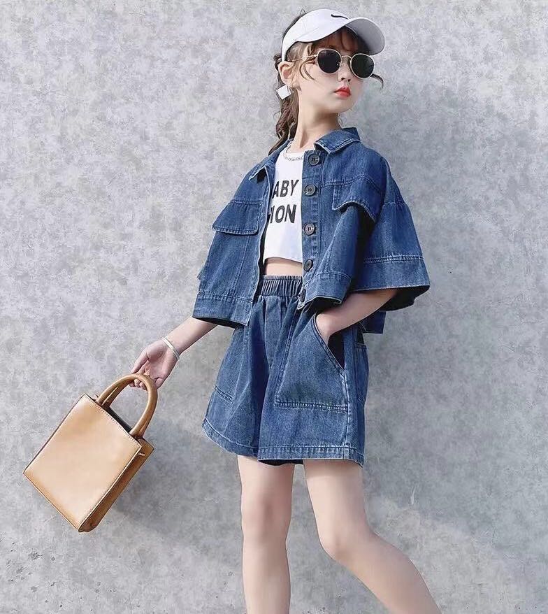 キッズ 子供服 セットアップ 上下セット 子どもセットアップ 夏セットアップ トップス+ショートパンツ 2点セット 女の子 デニムショートパンツ 夏 ゆったり 可愛い ジュニア こども 子ども 半袖