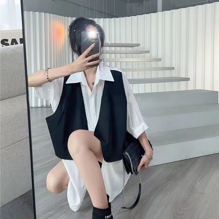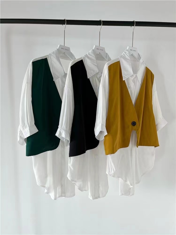 シアースリーブ ドッキングシャツ ボウタイシャツブラウス